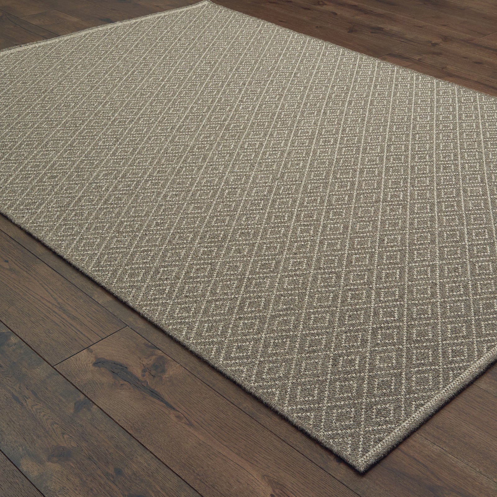 This rug consists of a flat weave with a woven wool backing.