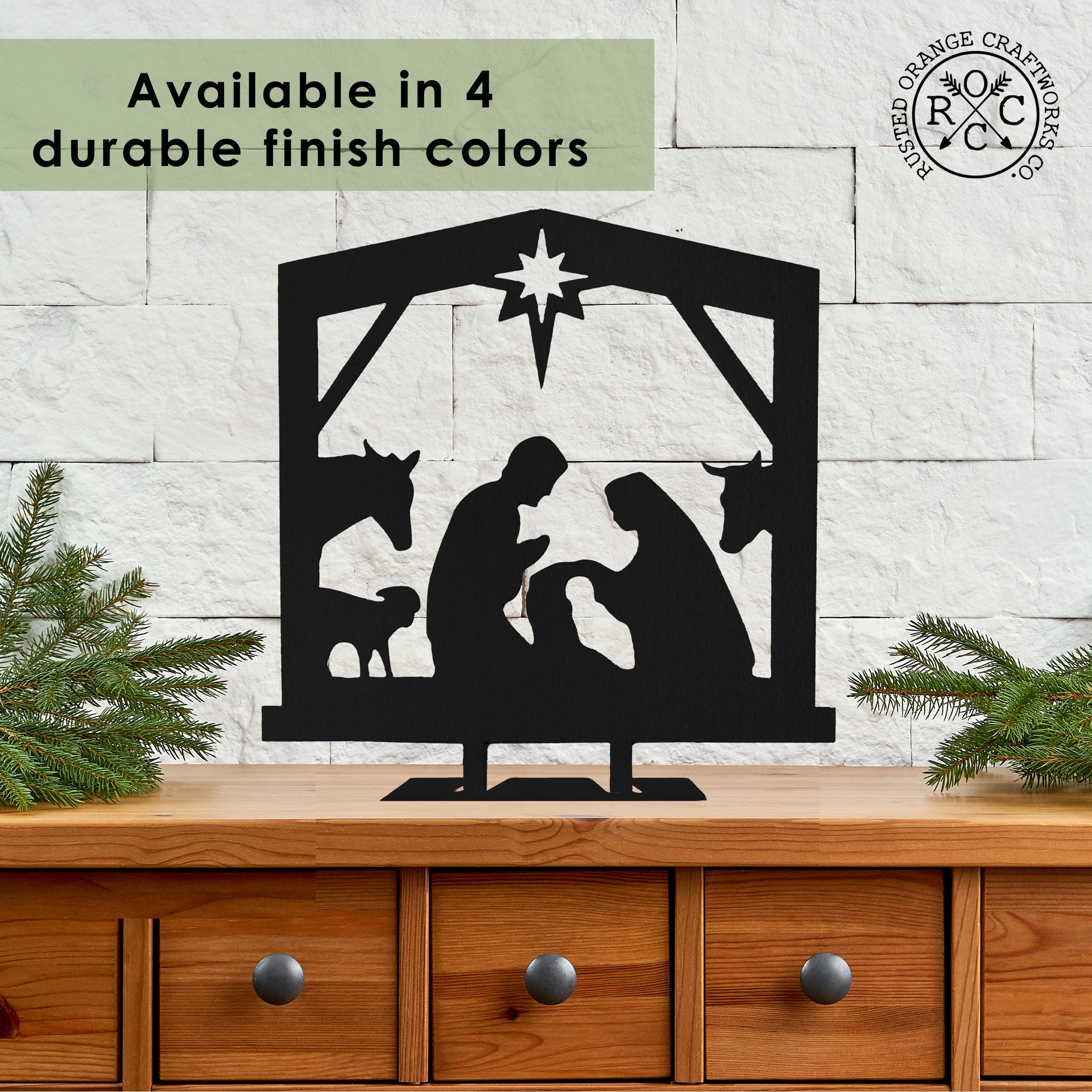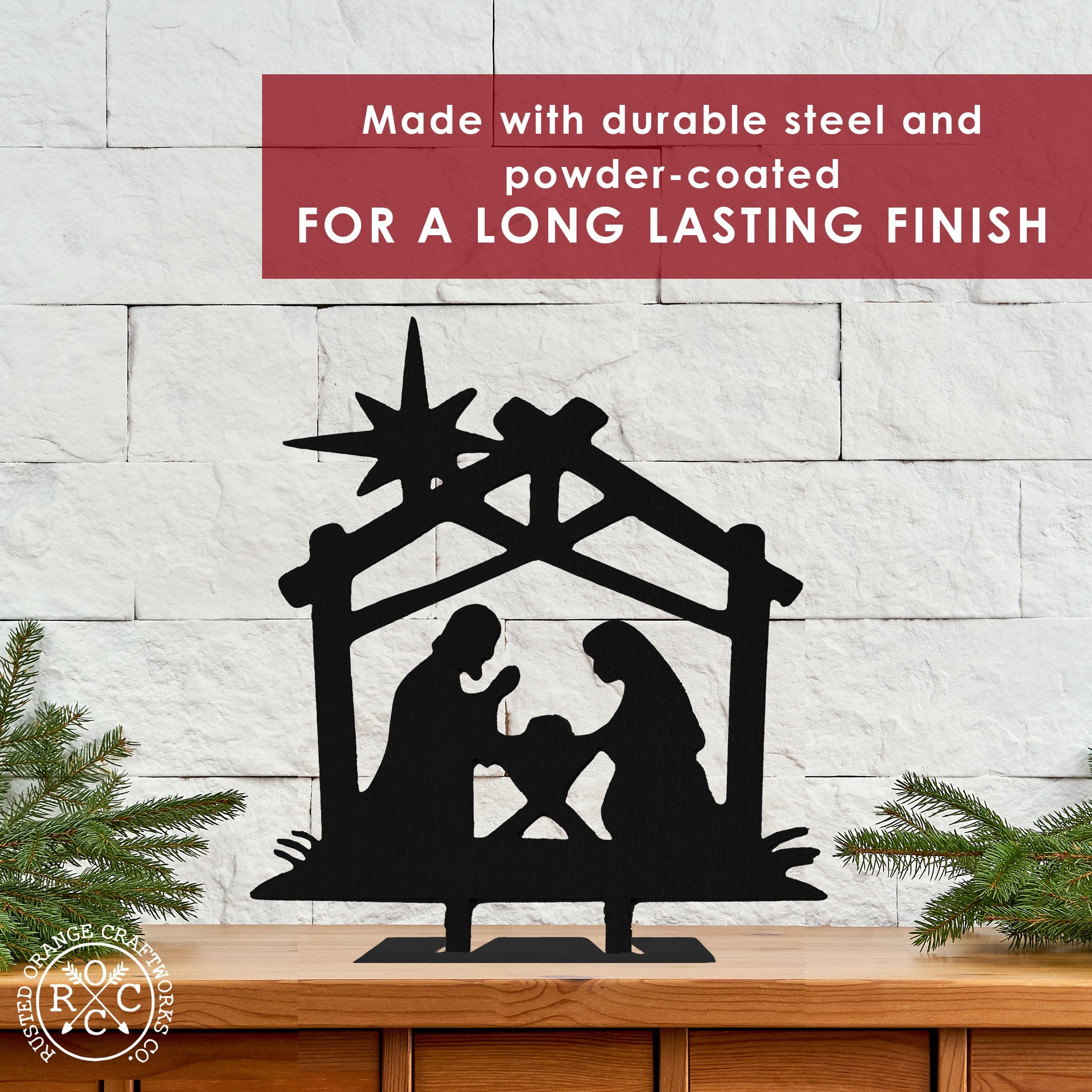 It's the Quintessential Christmas Gift for Your Loved Ones: This custom decor makes a perfect gift for friends and family on various holidays and occasions. Simple yet stunning decor. This piece is perfect for any piano top, mantel, or table top surface. Surprise your loved ones with this metal nativity as a thoughtful neighbor, friends, family, or co-worker gift.