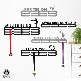 Lovingly Forged from Cold-Rolled Steel: Every hanger is custom handcrafted in our Utah shop. We pour love and care into every custom medal display design. Raw, sanded steel is used and we suggest preserving these mini masterpieces by sealing with your favorite spray paint, as rusting can occur if left outdoors or in humid areas. (But did you know? Some people let them rust for an extra rustic look!)