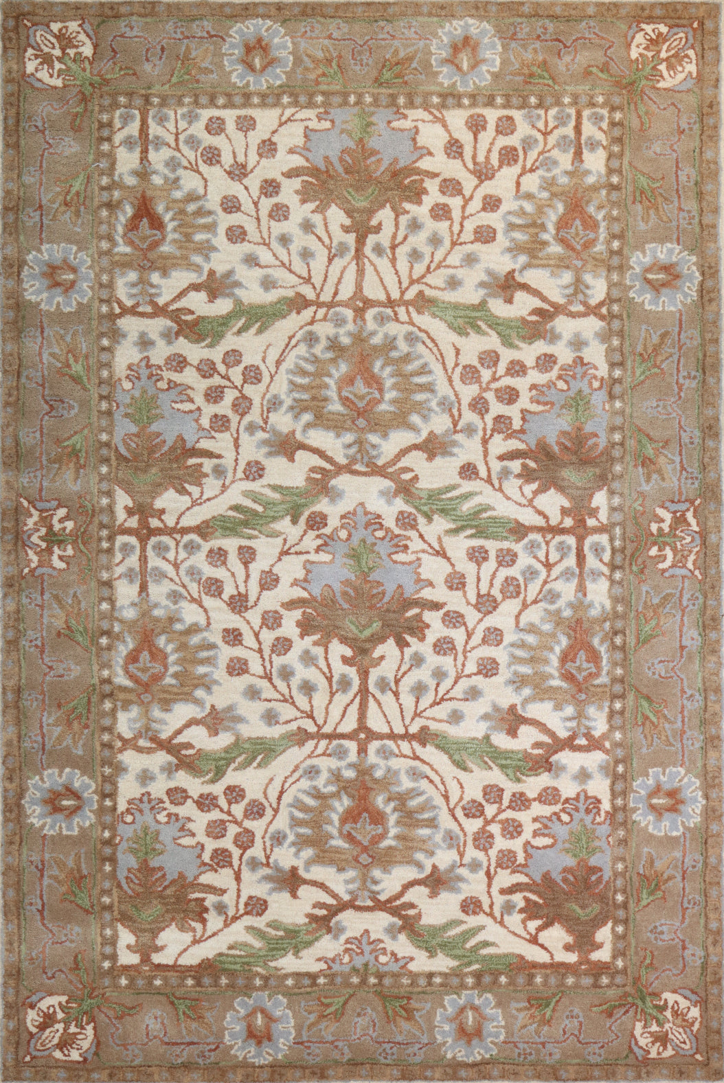 Capture the essence of beauty in richly detailed patterns adapted from the Arts and Crafts era, as well as from antique oushaks and kashans. These relaxed, transitional designs in warm, saturated colors with subtle abrash, create a serene ambiance. Hand-tufted with New Zealand blended wool for added sheen, resiliency and fiber strength. Sturdy, reinforced cotton canvas backing protects the carpet and adds an extra layer of cushion.