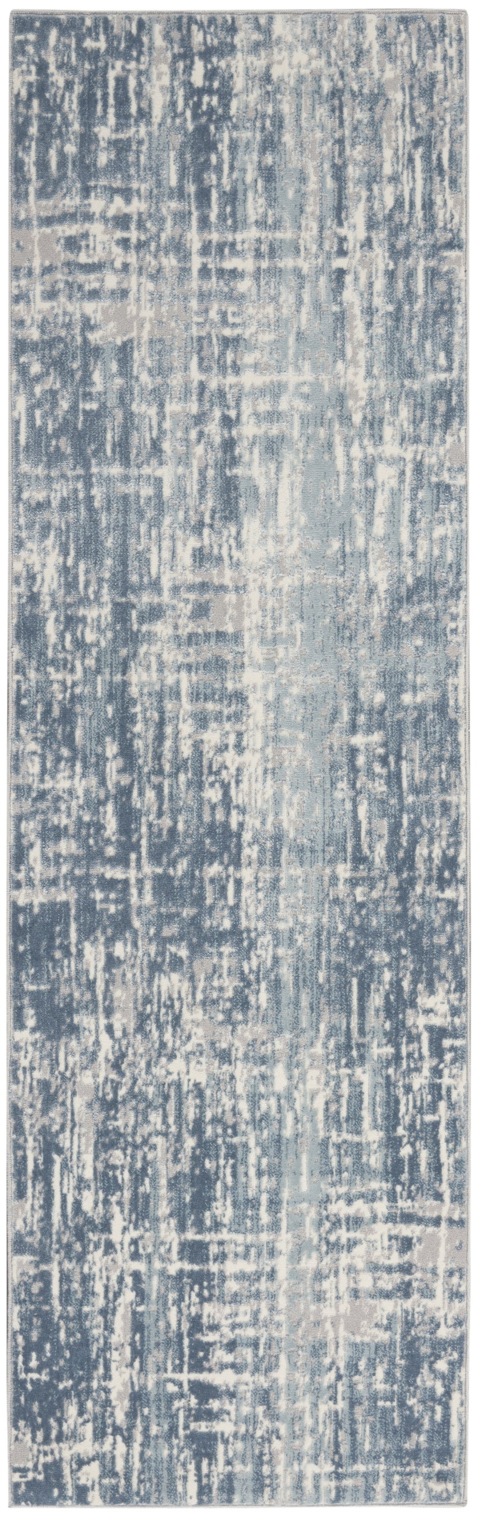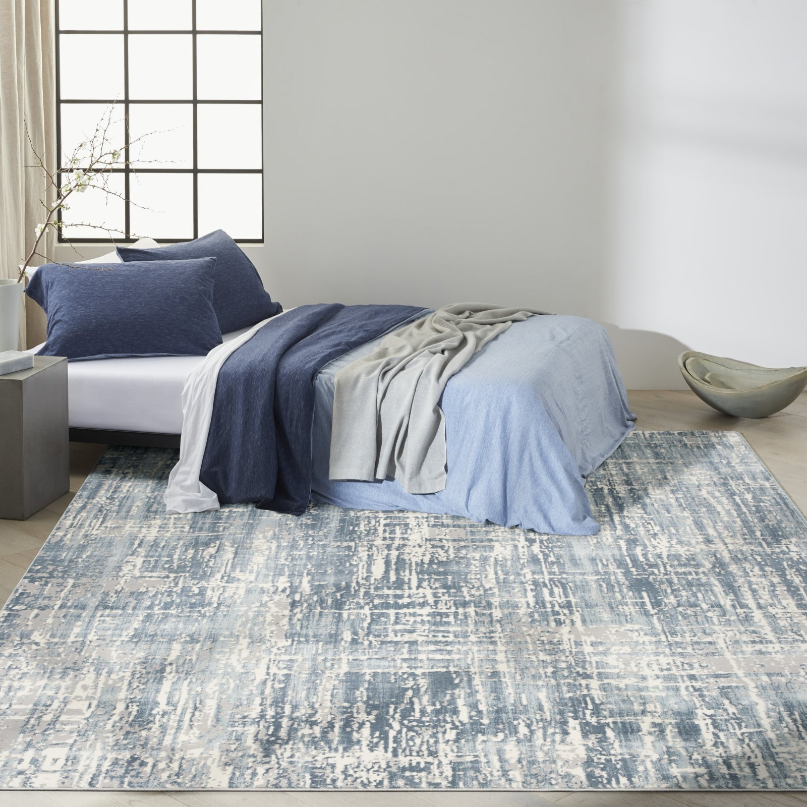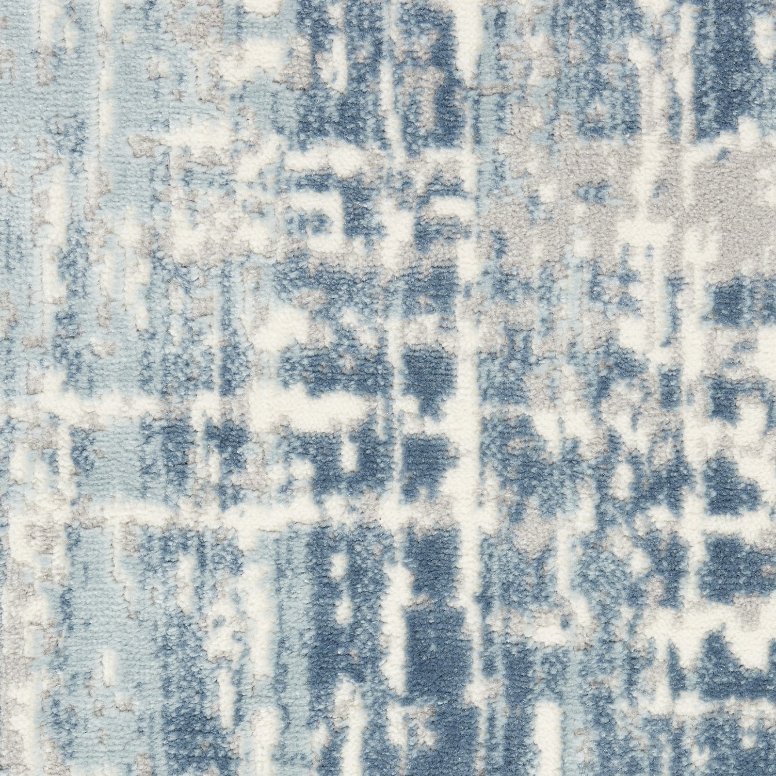 Versatile. Unique. Sophisticated. The Calvin Klein Enchanting Collection area rug. Its abstract design flows in energetic currents of blue-grey and ivory, enhanced by the texturally pleasing high-low cut pile. In a modern fiber blend designed for ease of cleaning and durability.