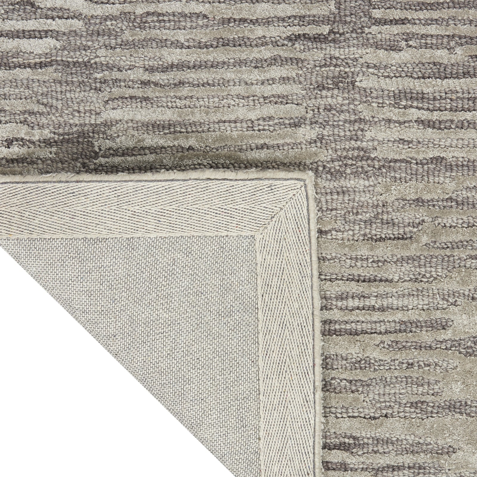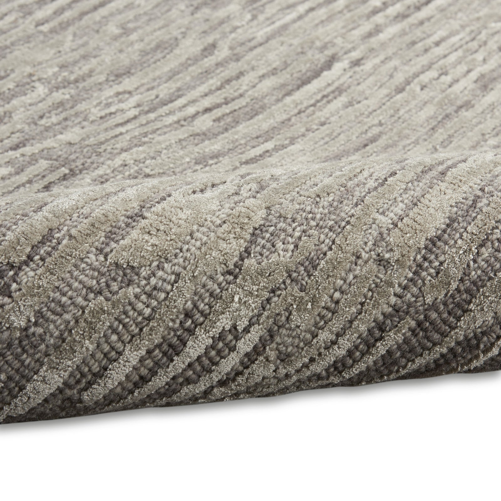 Textured, abstract, linear. This modern and neutral grey rug from the Calvin Klein Linear Collection infuses distinctive energy into your space. Handmade from a blend of wool and silky Luxcelle in a high-low, cut and loop pile for added dimension.