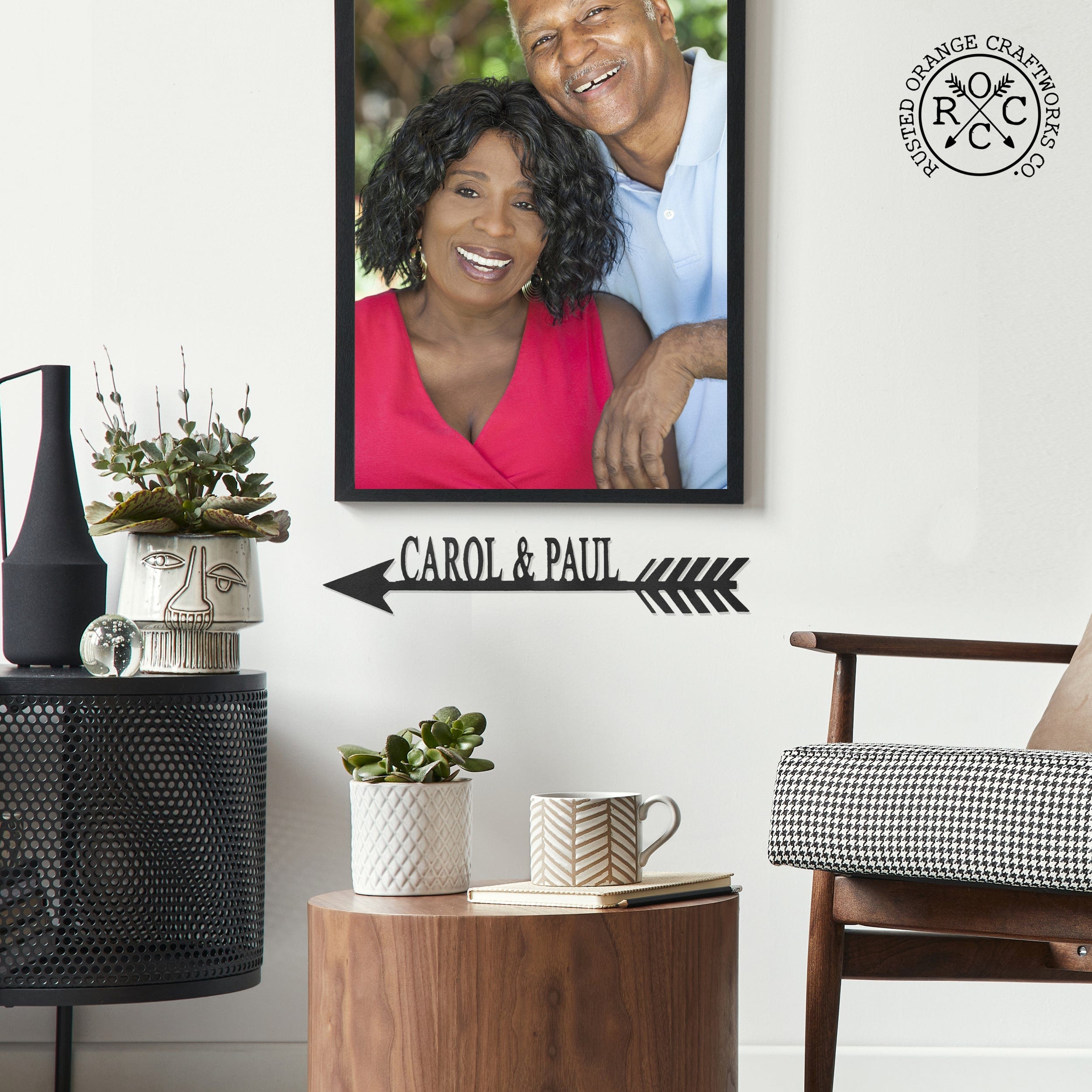 Add a touch of love and personality to your home with our Cupid Arrow Sign, a sleek and modern metal accent that features your custom text running down the shaft of the arrow. Perfect for Valentine’s Day, wedding décor, or everyday wall art, this personalized piece makes a thoughtful gift or a charming addition to your space.
