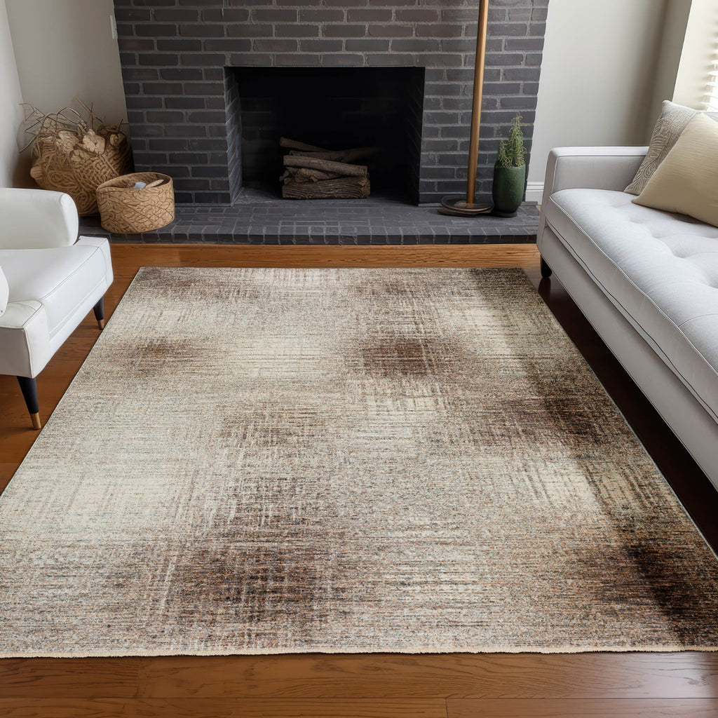 Experience luxury, comfort, and artistic flair with our standout area rug. The subtle abstract design, combined with a palette of rich, warm colors, is accentuated by mesmerizing shading, making it a piece that resonates with sophistication. Every touch reveals its tight, low pile's velvety softness, promising both visual and tactile pleasure. And the easy-care short fringe? It's the perfect finishing touch to this fusion of beauty and functionality.