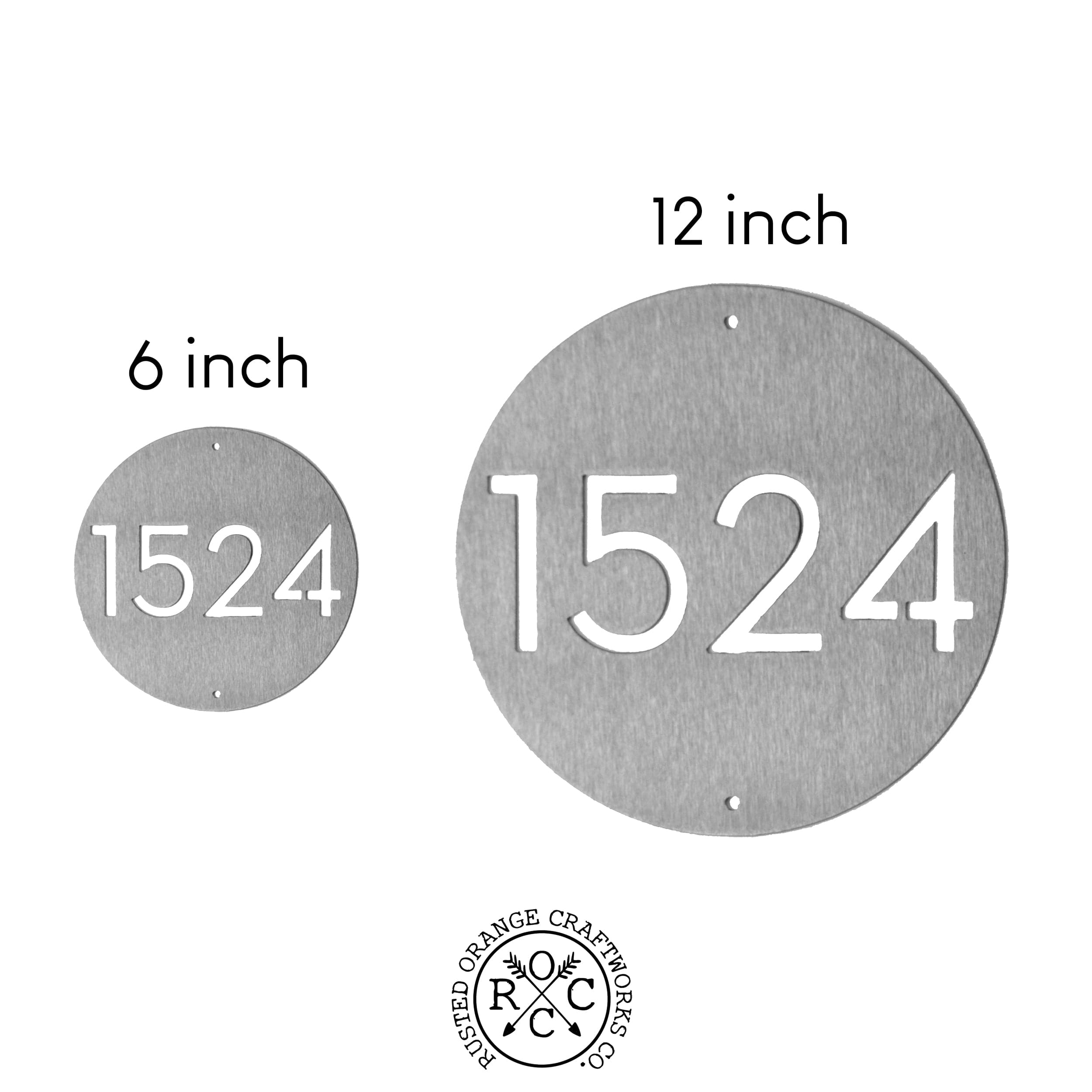 Each plaque features a single row of precision-cut numbers and includes two pre-drilled holes for easy mounting or hanging. Available in 6" or 12" diameter, this simple yet bold address sign enhances any entryway, porch, or gate with its minimalist charm.