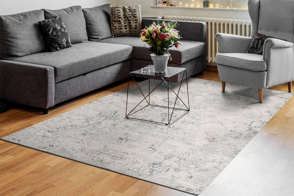 The Carson collection features modern designs that will truly capture the eye. The designs can give rooms plenty of visual interest, courtesy of the assortment of styles in the collection. The neutral ivory color base complimented by the intricate blue and copper design work allow for the Carson collection to work in a variety of rooms. With the variety of design options in the Carson collection, it is a great option for any home. The collection is made of shrink polyester and is machine-made in Turkey.