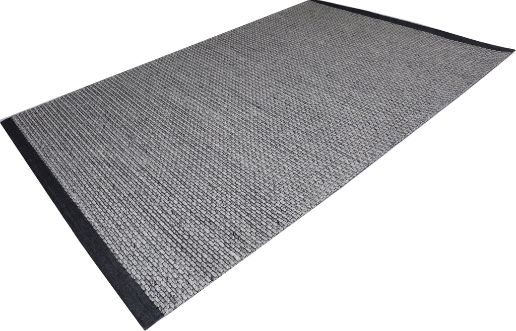 A simple design consisting of small blocks broken apart by careful weaving makes Vici amenable to complement any motif. Interwoven loops with a delicate yarn weaving between create an elegant and unique pebbled texture underfoot. The ivory, black, and grey color palette can complement both a neutral room setting or contrast-in an enlightening way-a colorful room setting. The deep black border on both ends contains Vici in a way that designates it as a statement piece.