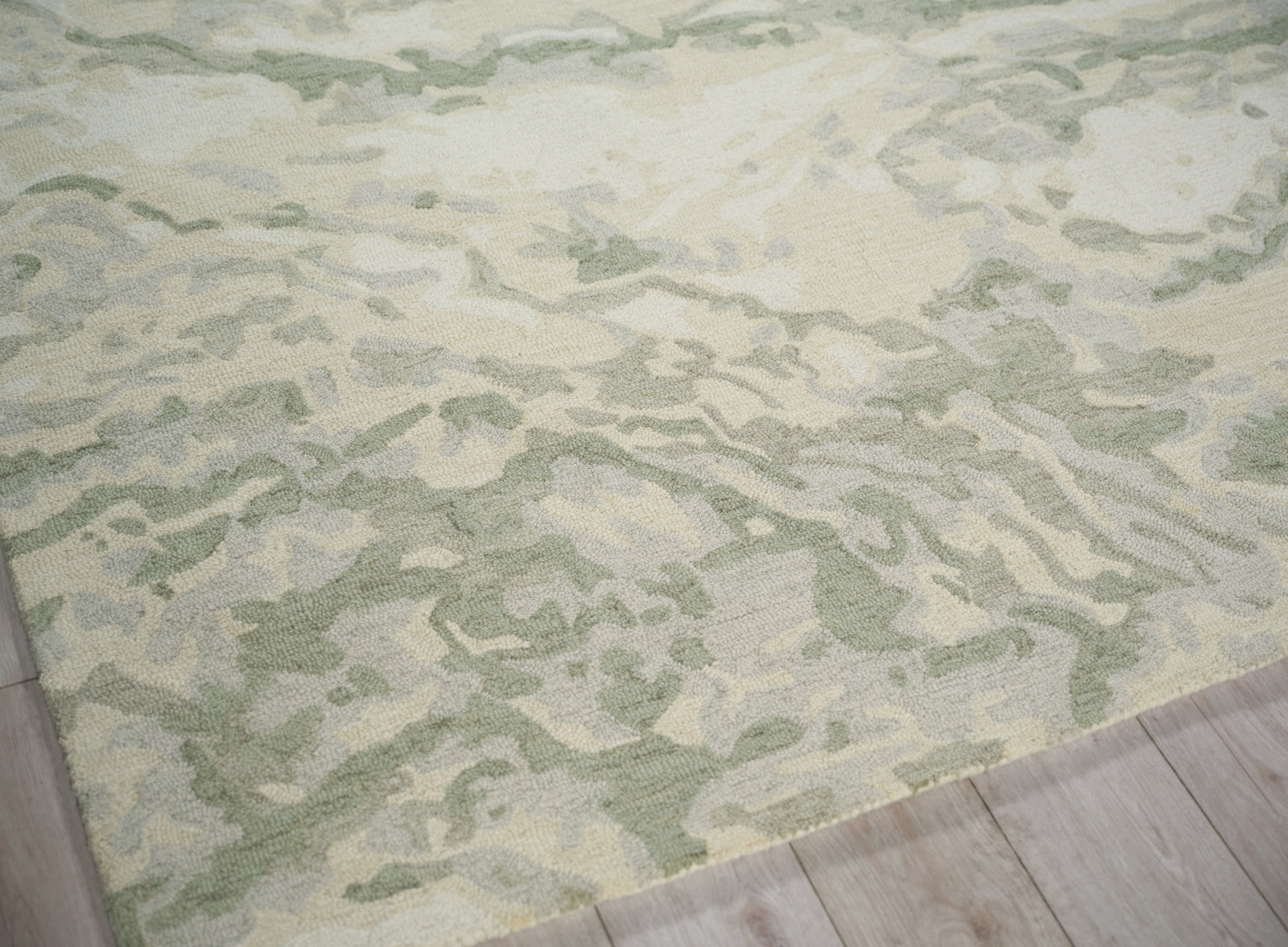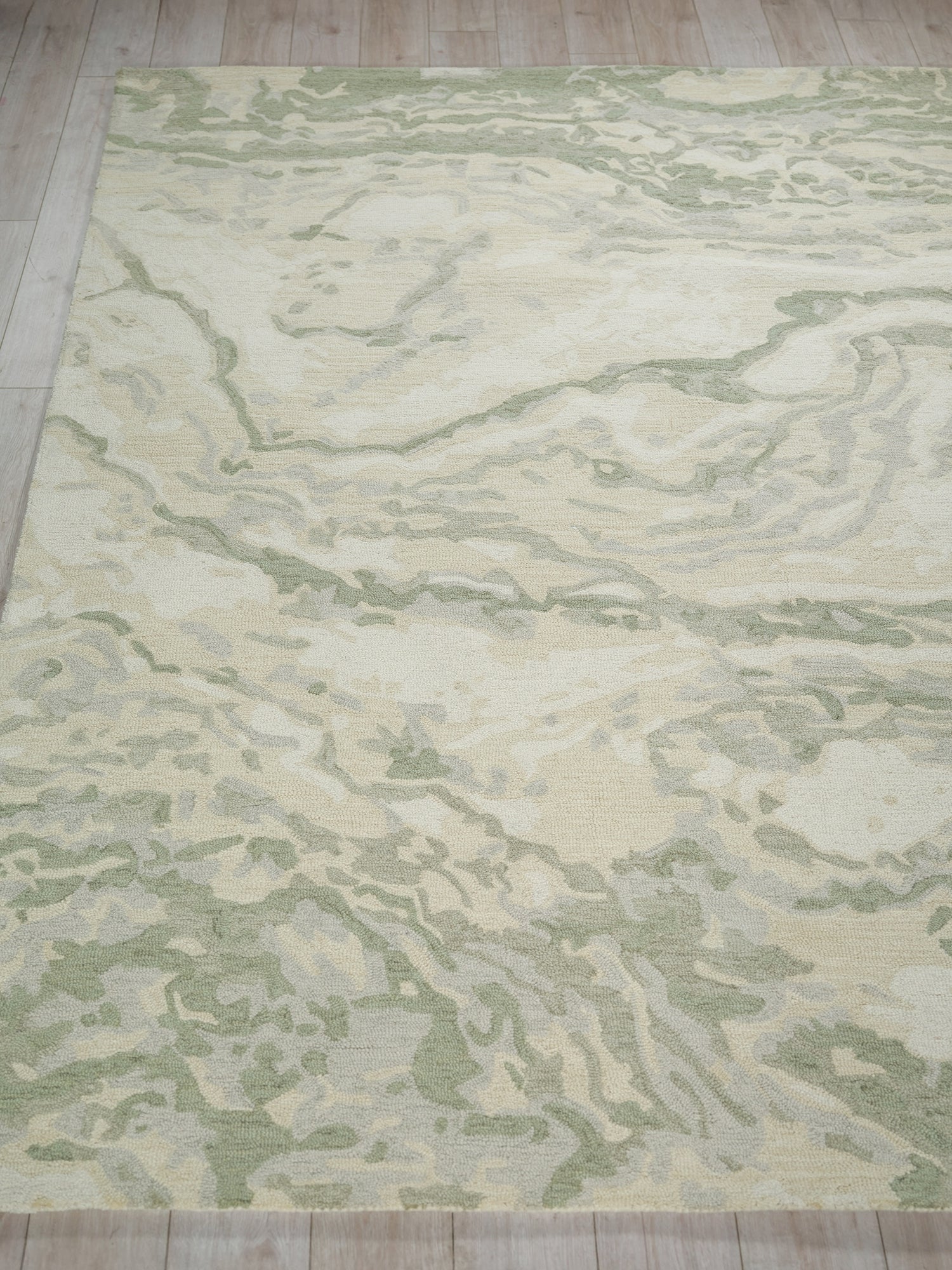 Hand Tufted of 100% wool this dense construction features overlapping design, creating the look of a marble-inspired design. The bands of color vary in thickness and intensity, adding a realistic touch to rug. Its soft edge, abstract design in muted washes of colors makes it a stunning addition to any interior space.