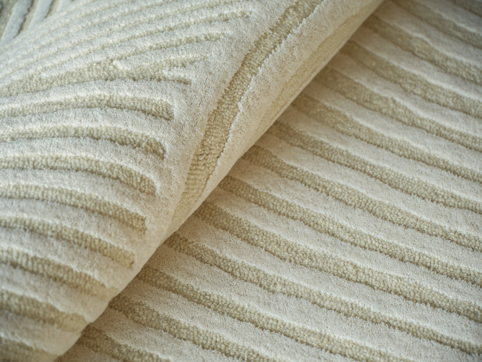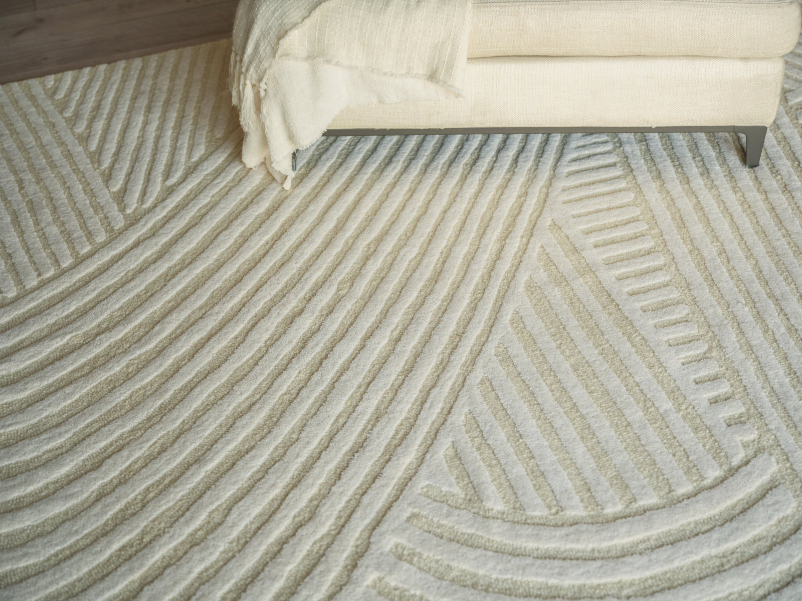 The large patterns feature the use of 100% Wool Fiber. A combination of cut and loop pile, in tone-on-tone colors compliment the large-scale patterns. In addition to its visual appeal and softness a wool rug is a great choice for durability and sophistication of this group for years to come.