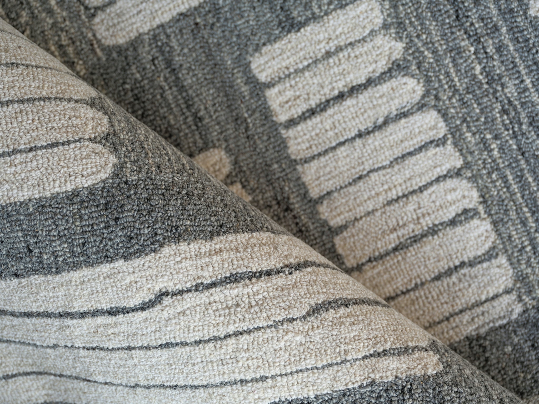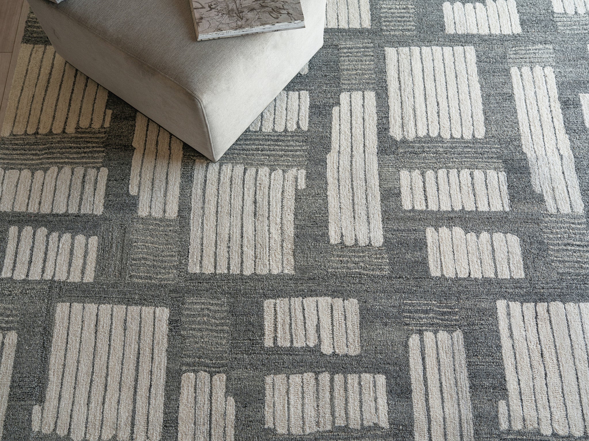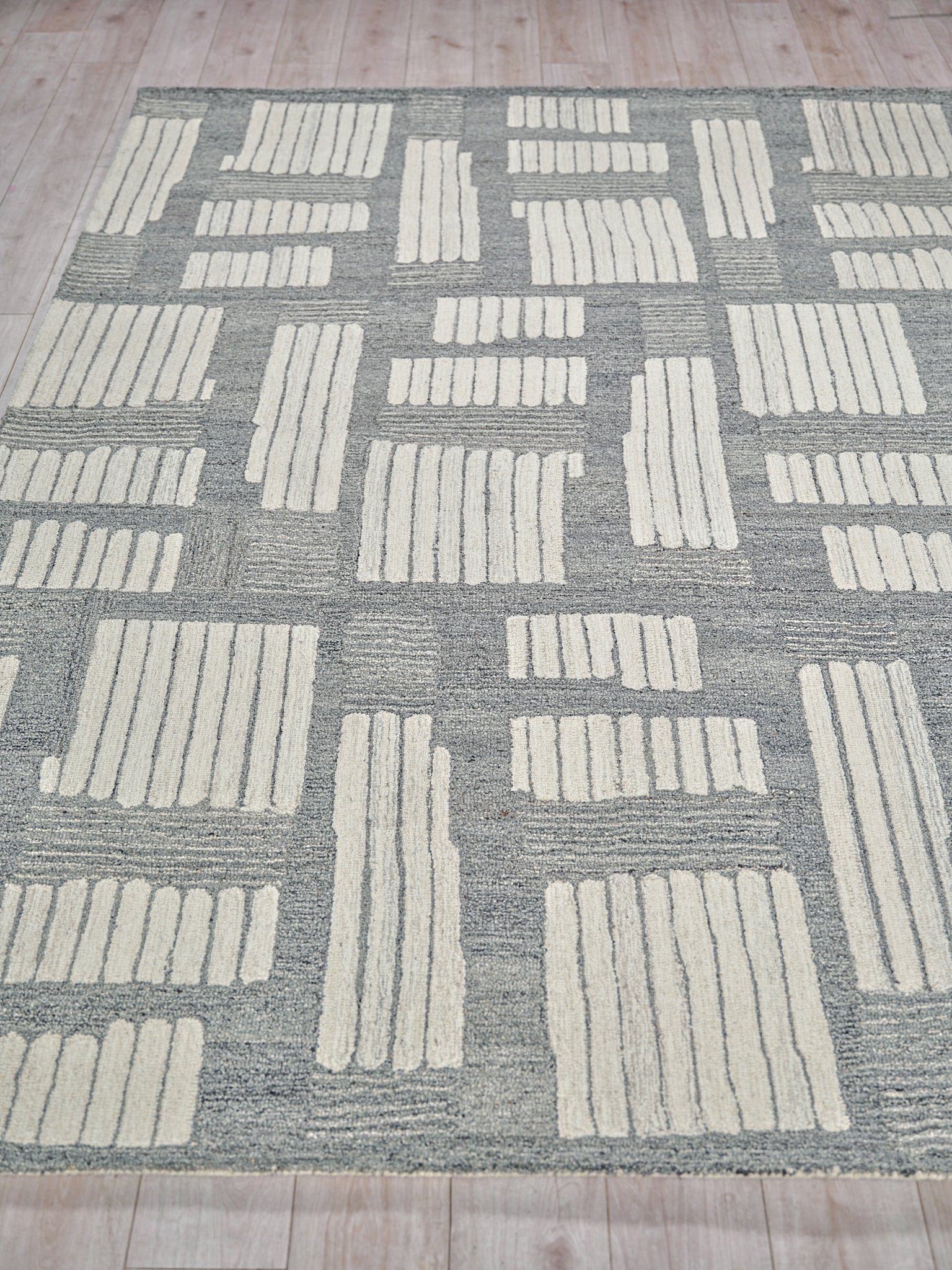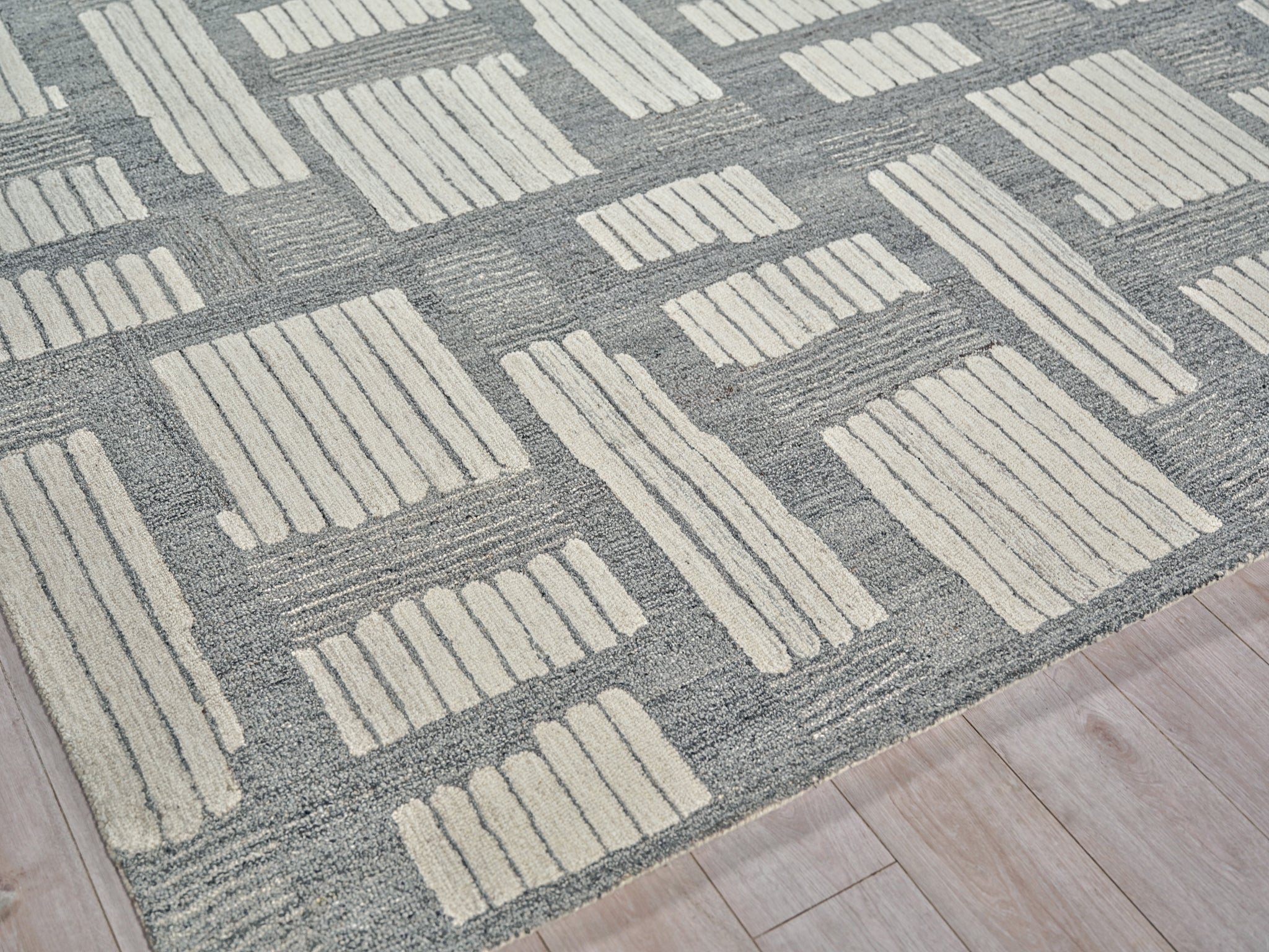 Our Natural collections are hand-tufted 1% wool rugs using neutral colors with overall geometric shapes. Subtle contrasting colors create a contemporary design aesthetic with timeless appeal. Wool as the primary material brings warmth and durability and a luxurious feel to the rug.