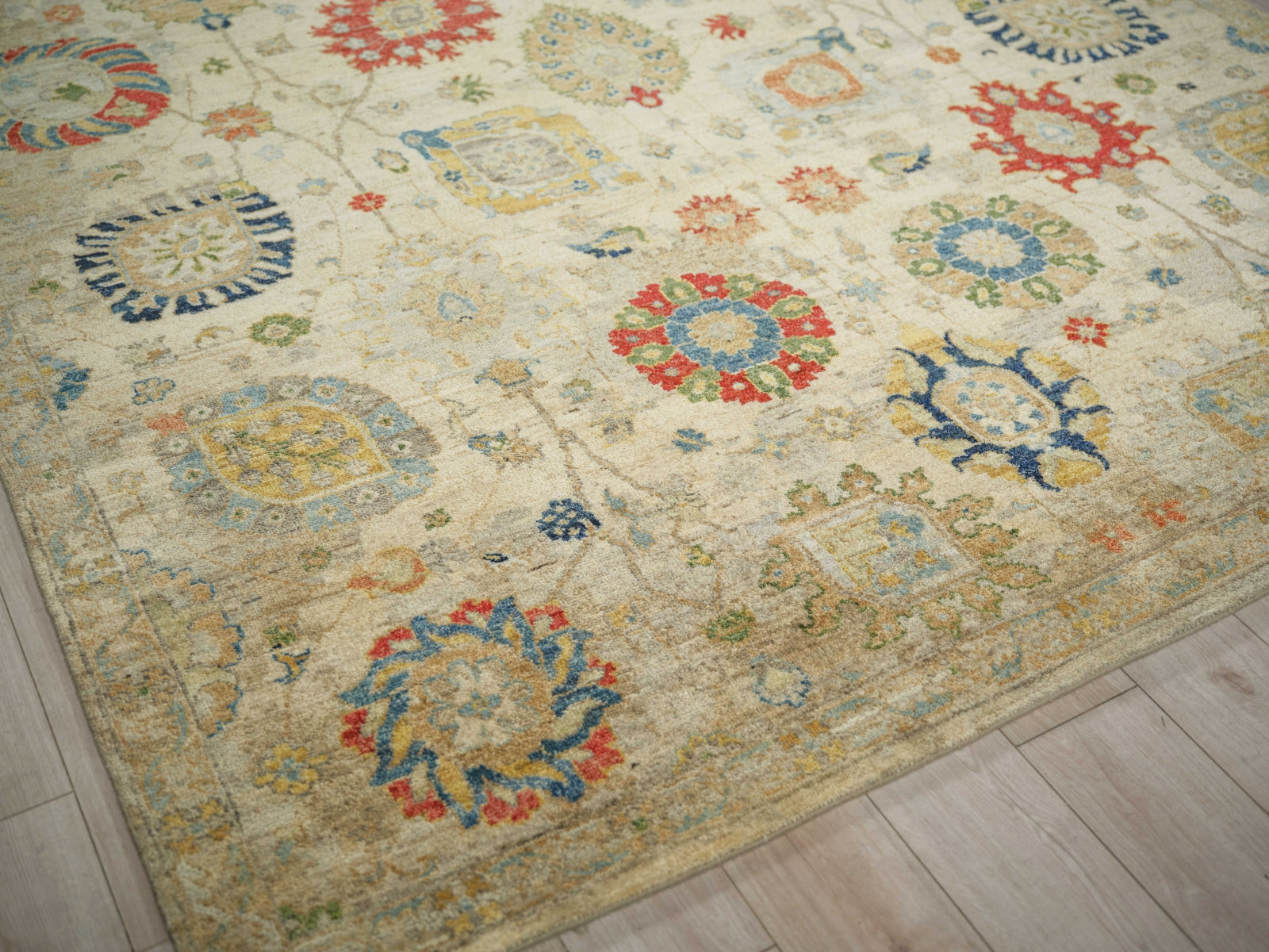 This collection of fine Hand knotted patterns made of pure 100% wool. This collection is based on classic traditional design motifs. Using bold exciting colors that create a visual burst of color and depth in design. Wool as the primary material brings warmth and durability and a luxurious feel to the rug.