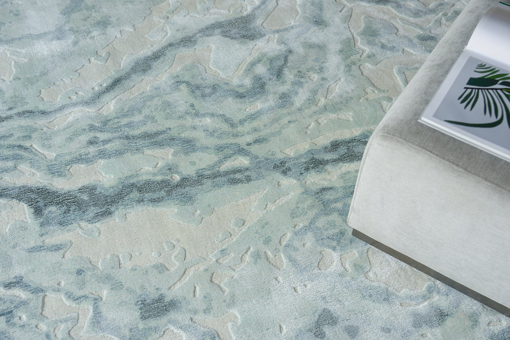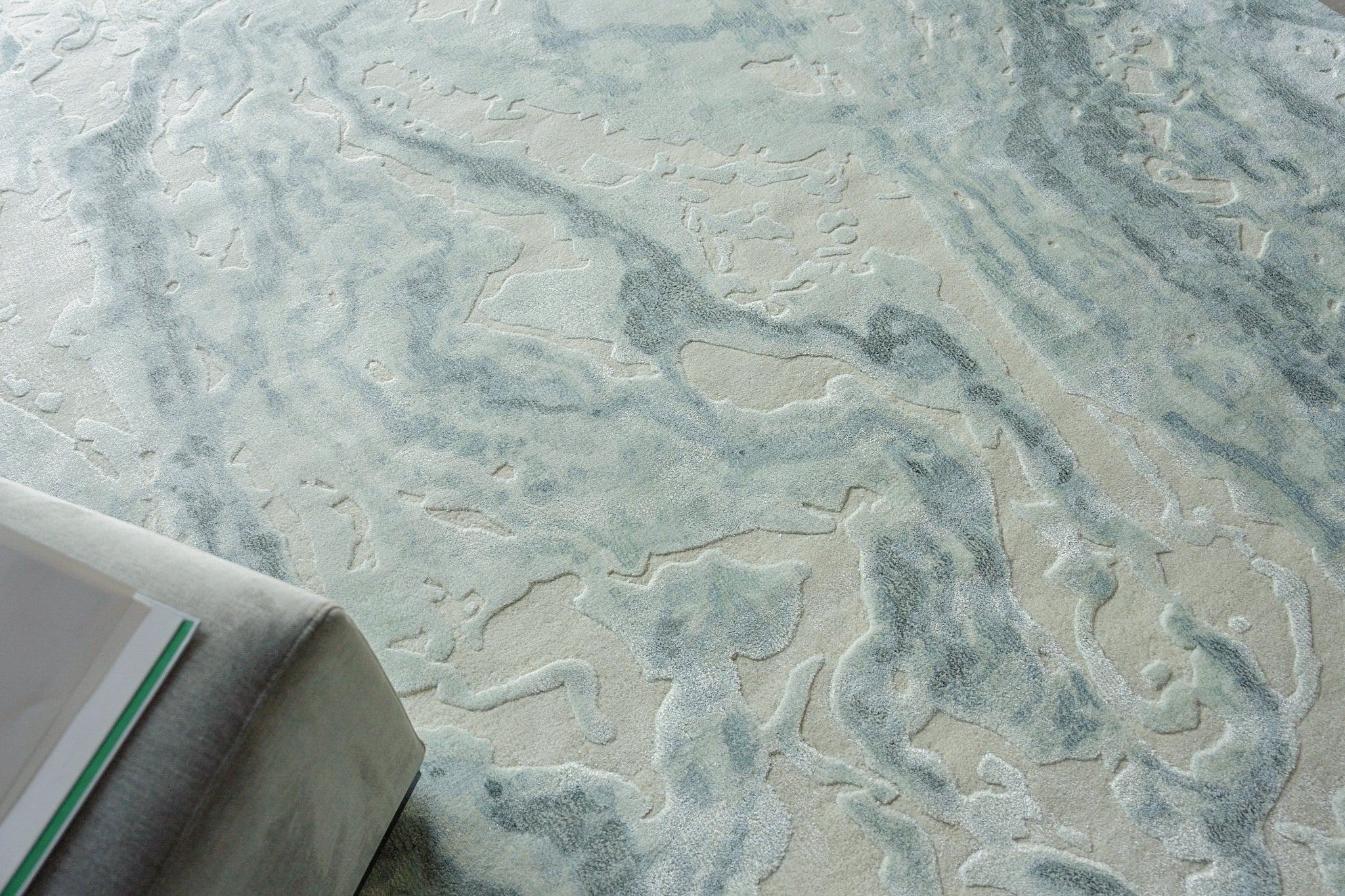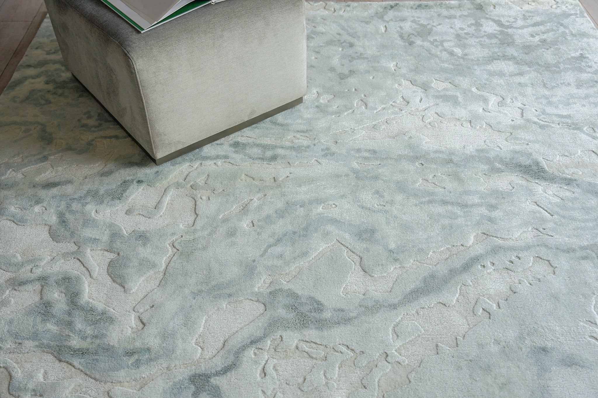 Saccara, is a luxurious rug crafted from high-quality, plush wool fibers, and accented with Bamboo Silk which exudes elegance and refinement. The marble-inspired design replicates the mesmerizing veining found in natural marble slabs. Subtle tones complement overall the design providing a soft and inviting texture underfoot.