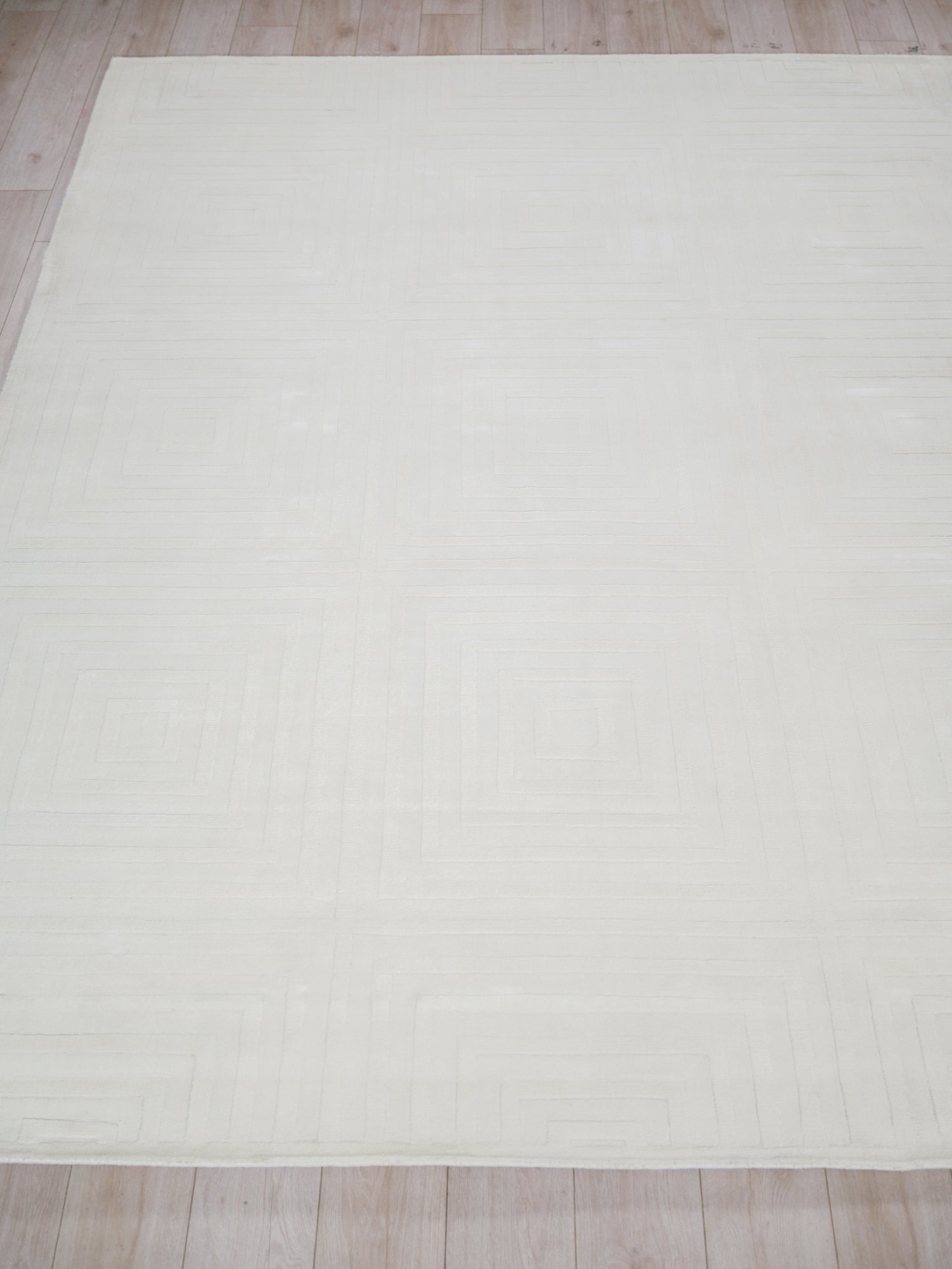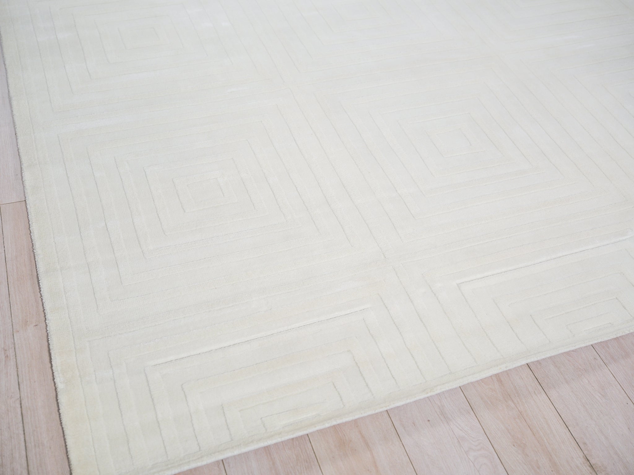 A velvet plush pile finish that has a silky sheen and luster of silk. Made with the performance of Nylon is truly unique. Overall, pattern is the classic repeating box design Ultra-Modern choice for anyone who wants a luxurious and durable rug that is easy to clean and maintain.
