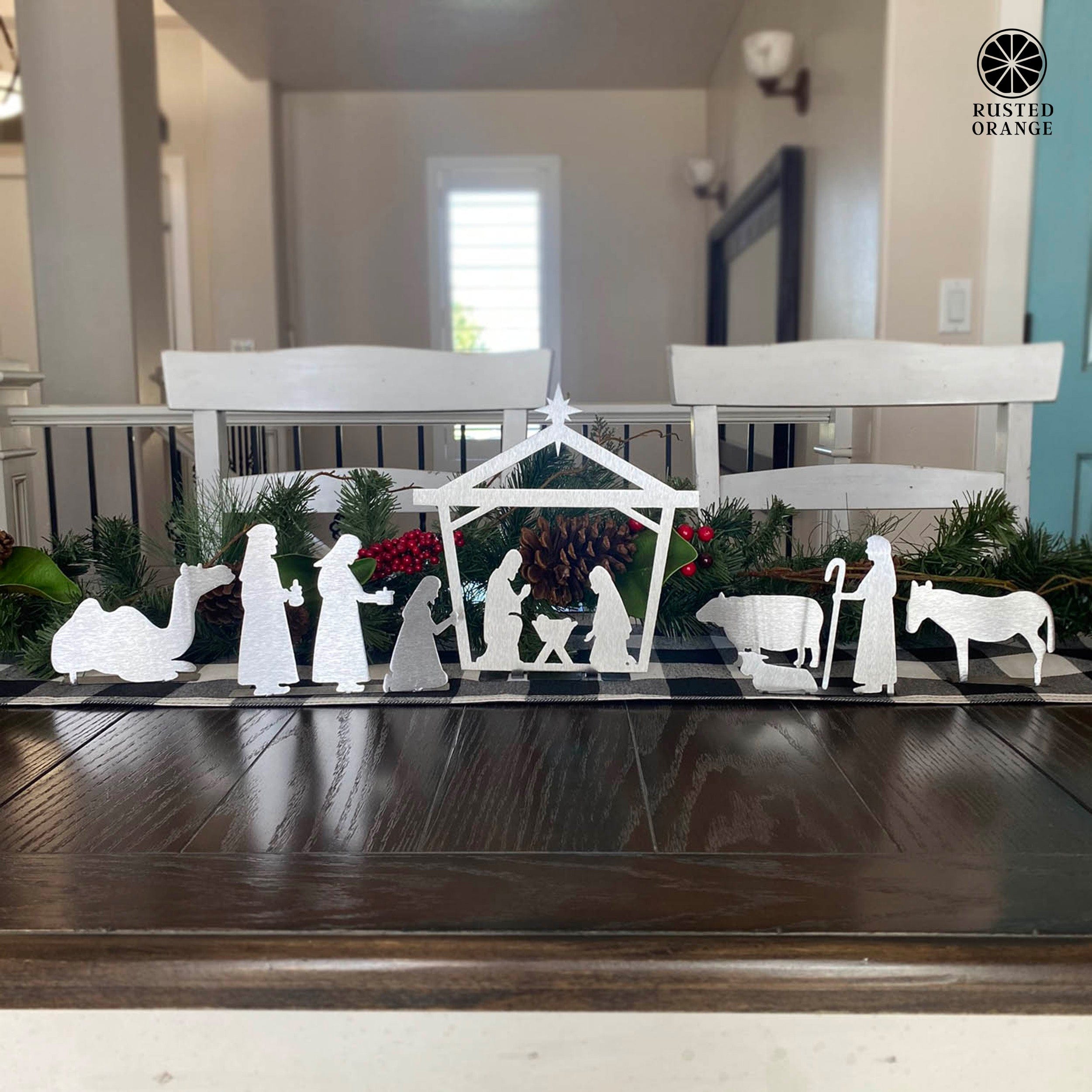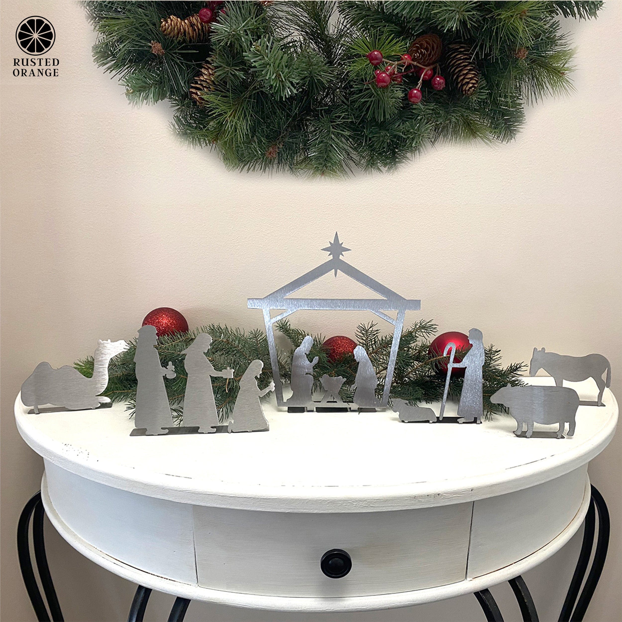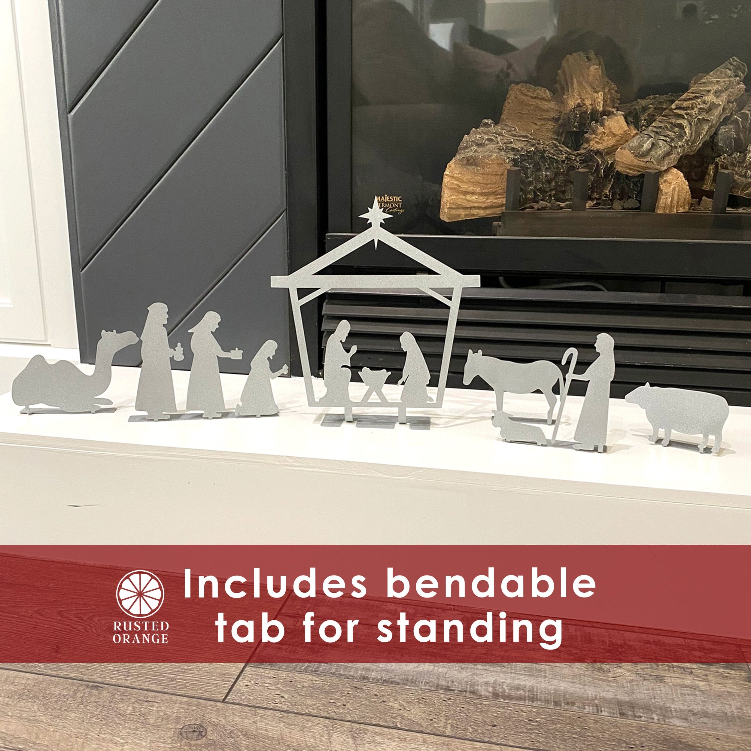 Each piece in our nativity set indoor collection is thoughtfully designed with a bendable tab, allowing them to stand upright, creating a nativity wall scene, or adorning your mantel or any corner of your home. The sturdy metal construction ensures durability while adding a dash of farmhouse charm to your Christmas decor. Let these figures stand tall on your mantle, or use them as unique nativity scene figurines to create a memorable Christmas display.