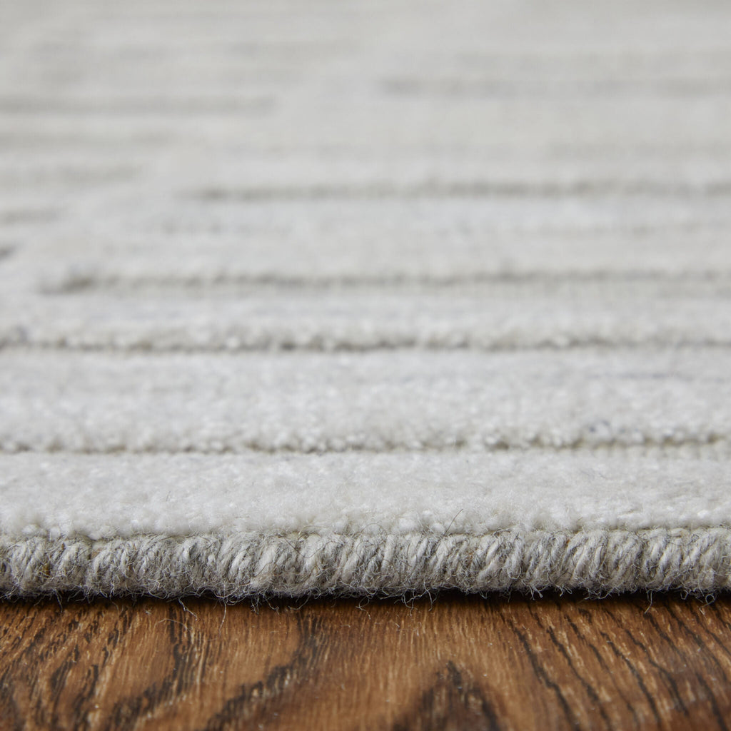 The Feizy Elias collection is a lustrous and softly-defined geometric pattern, creating a textural high-low effect against a heathered backdrop of space dyed wool. Hand loomed in a luxurious viscose and wool blend, the fabric makes the rug inherently fade resistant while also providing a natural sheen. Presented in a muted, pearlescent color palette, the floating patterns create a sophisticated aesthetic that is suitable for a wide array of living spaces in your home.