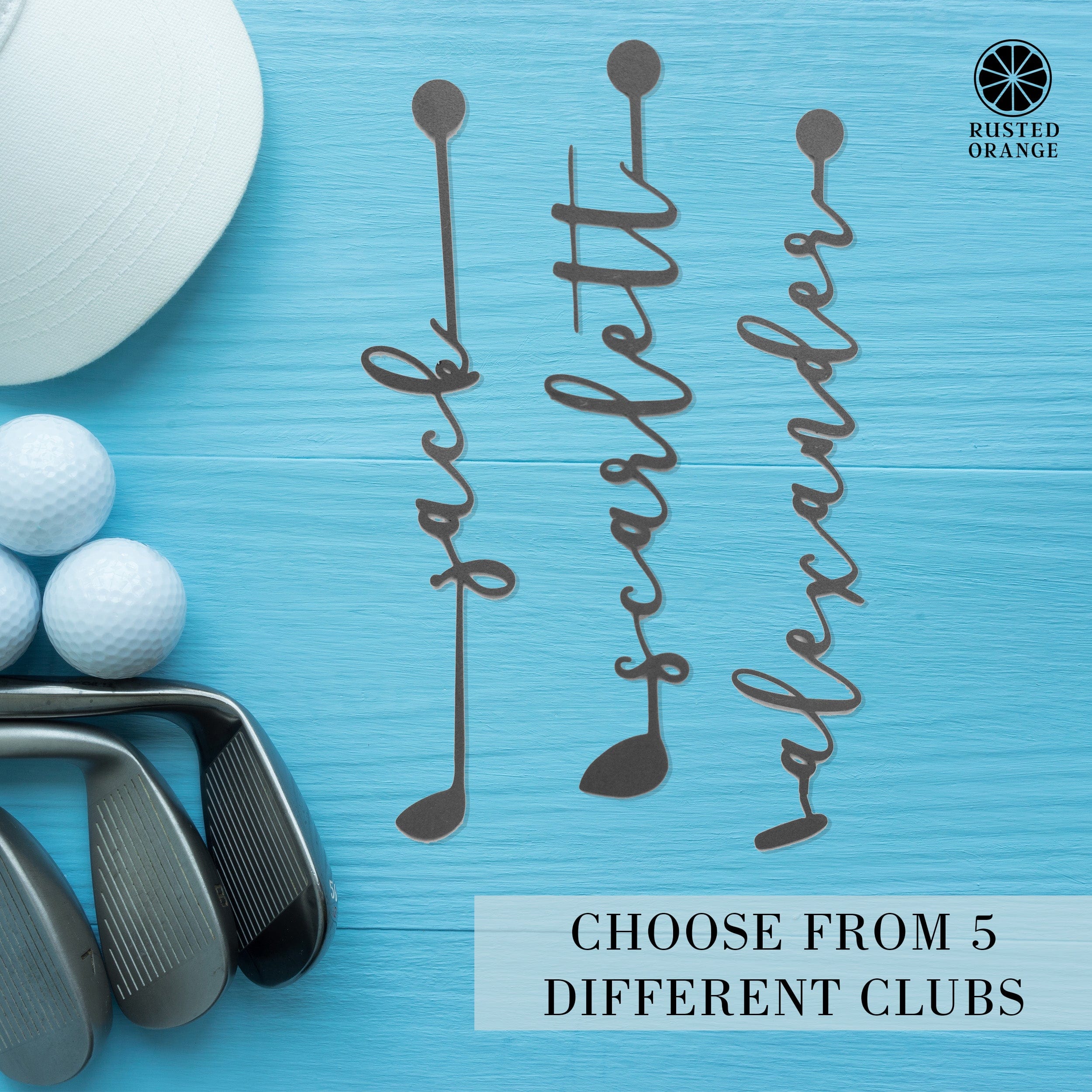 What's included: 3 personalized golf clubs (magnets for each included)