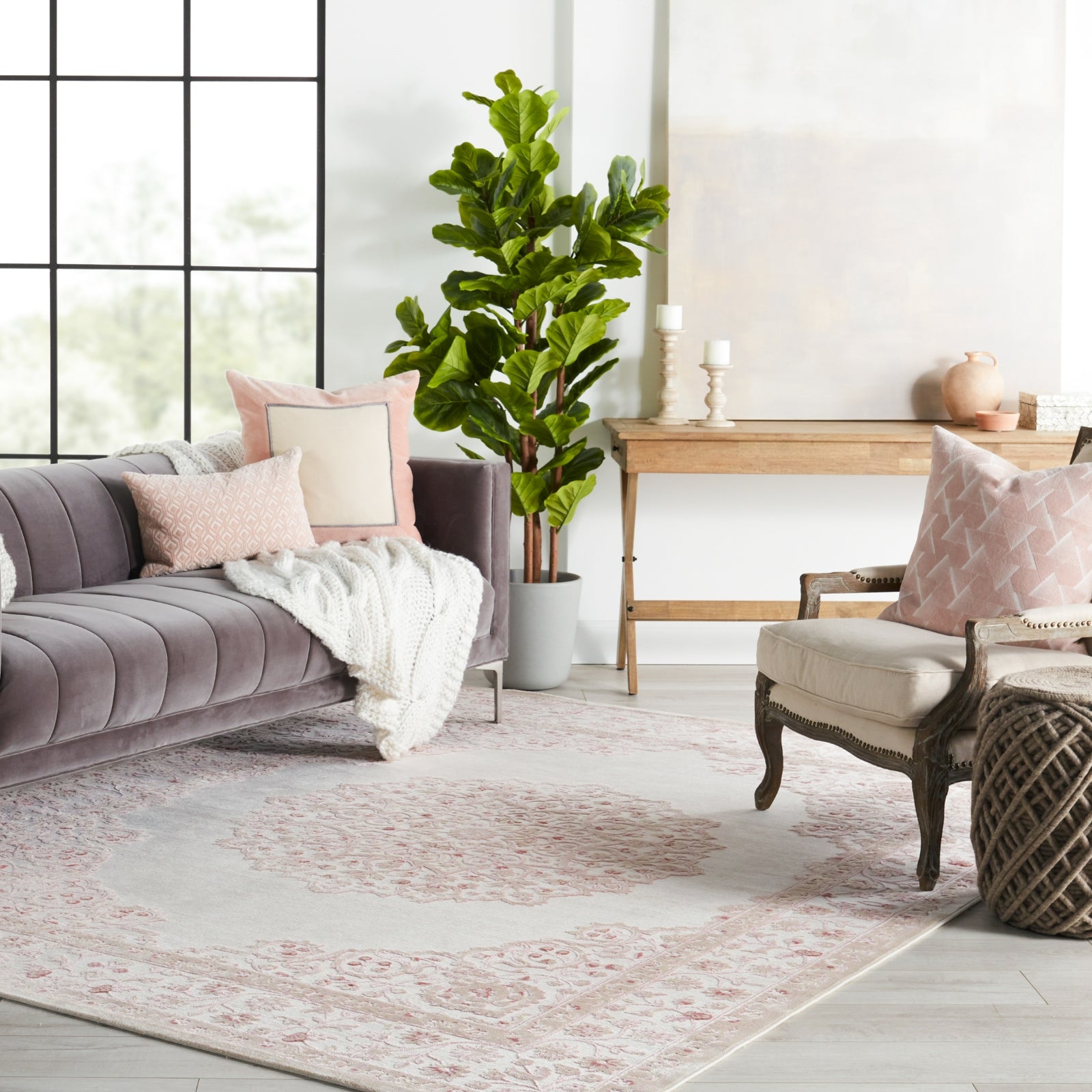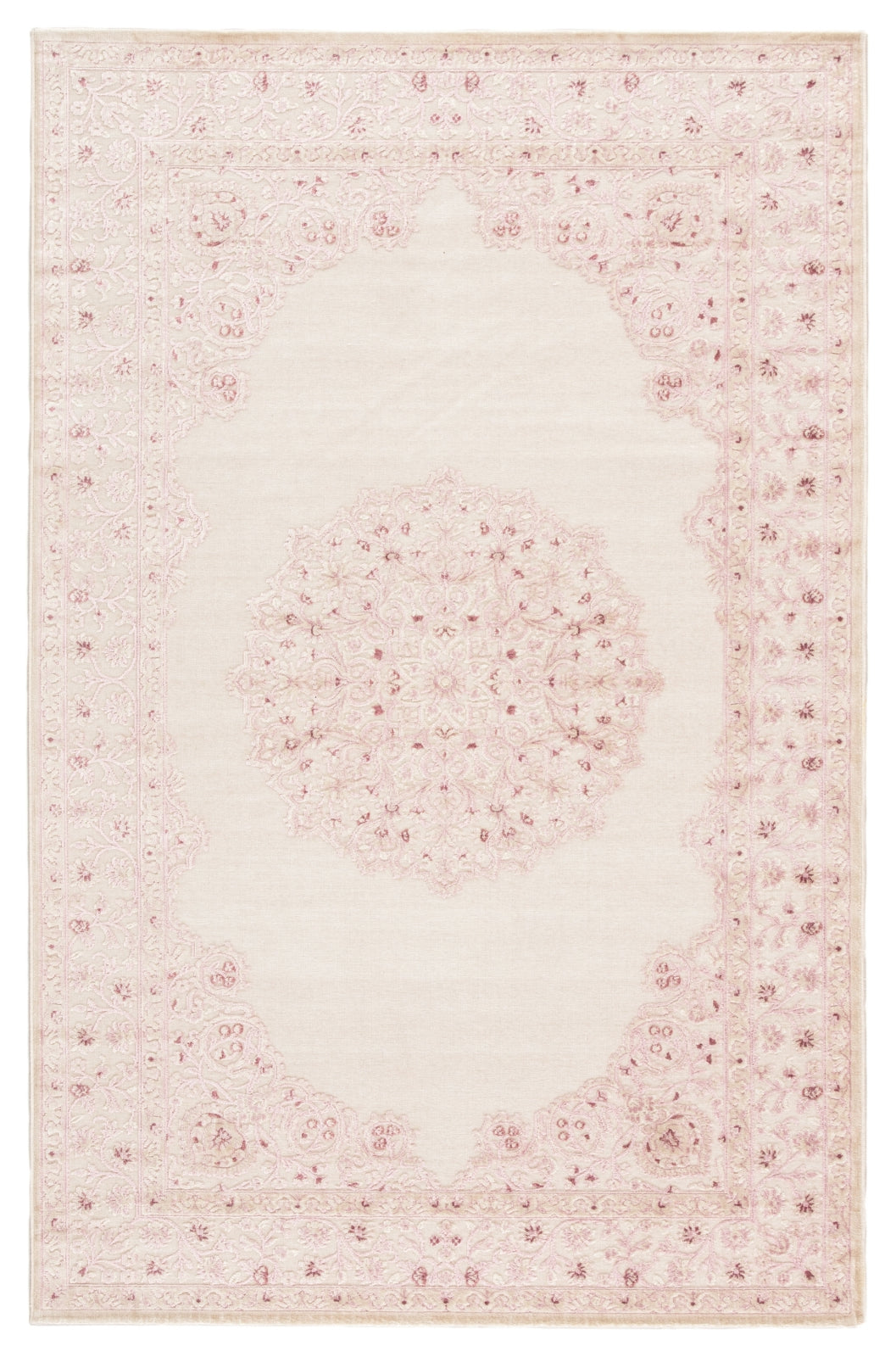 Soft to the touch and alluring with a distinctive high-low texture, this rayon and acrylic blend area rug lends the perfect accent to bedrooms. A feminine pink and white colorway offers contemporary glamour to the global-inspired center medallion and scrolling border detail of this elegant layer.