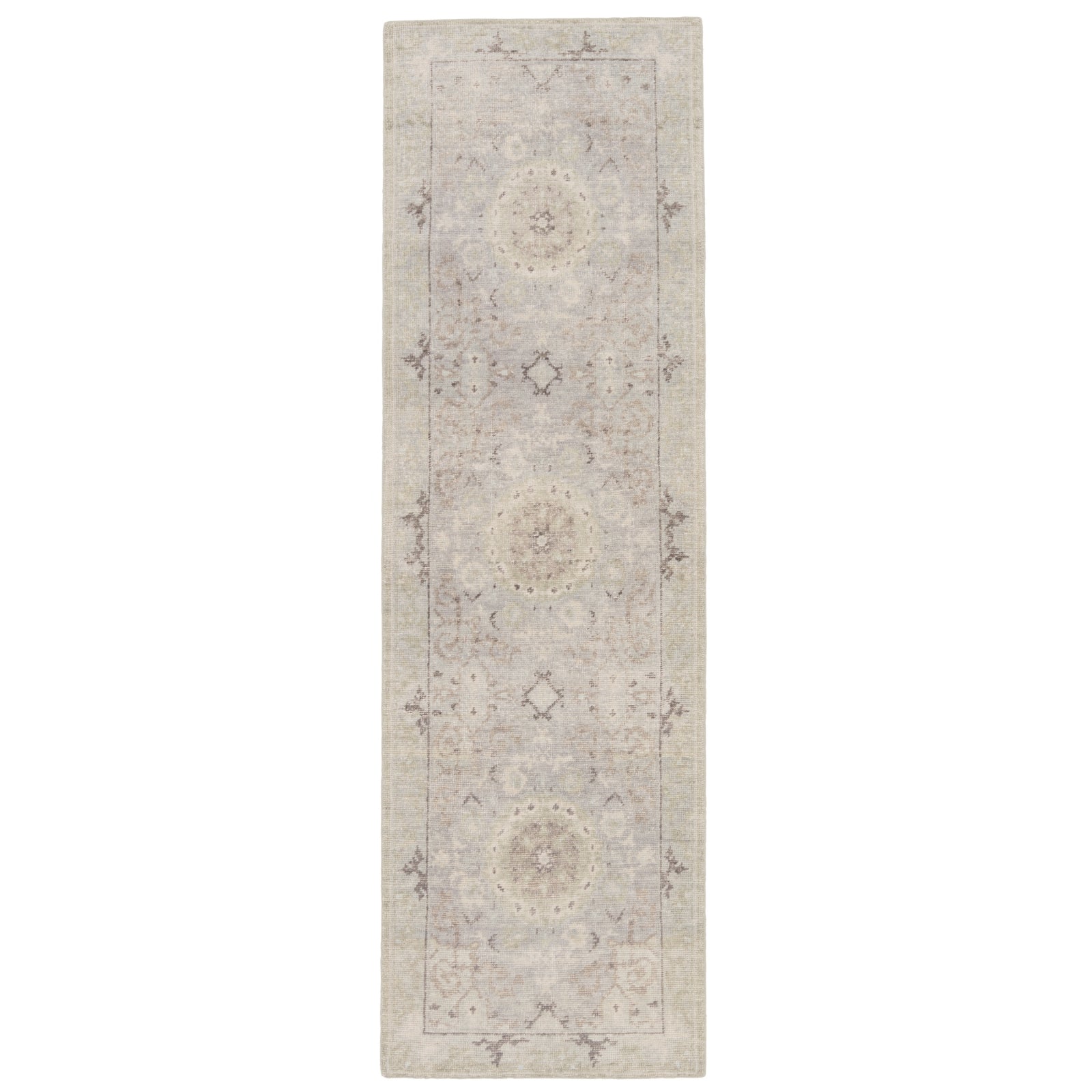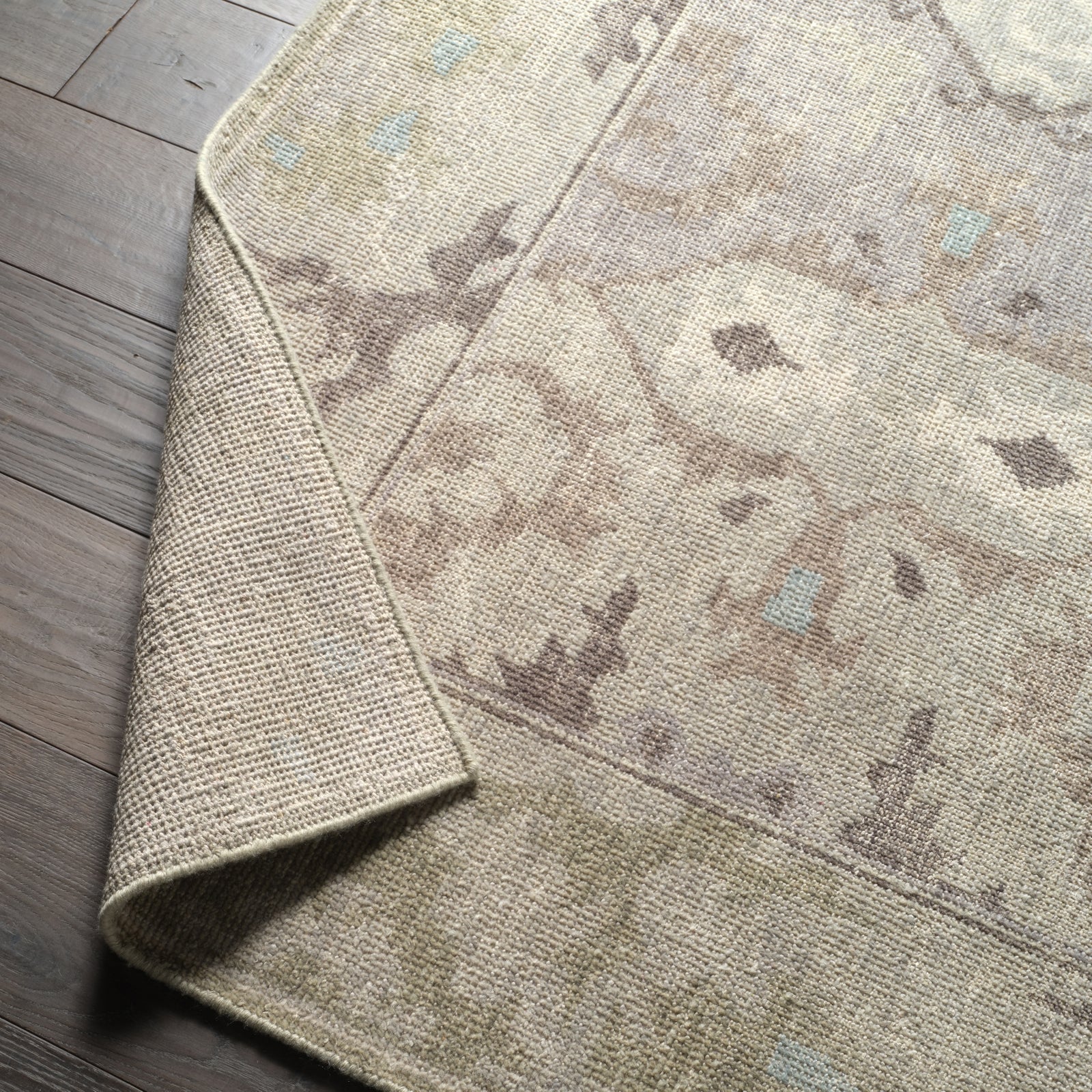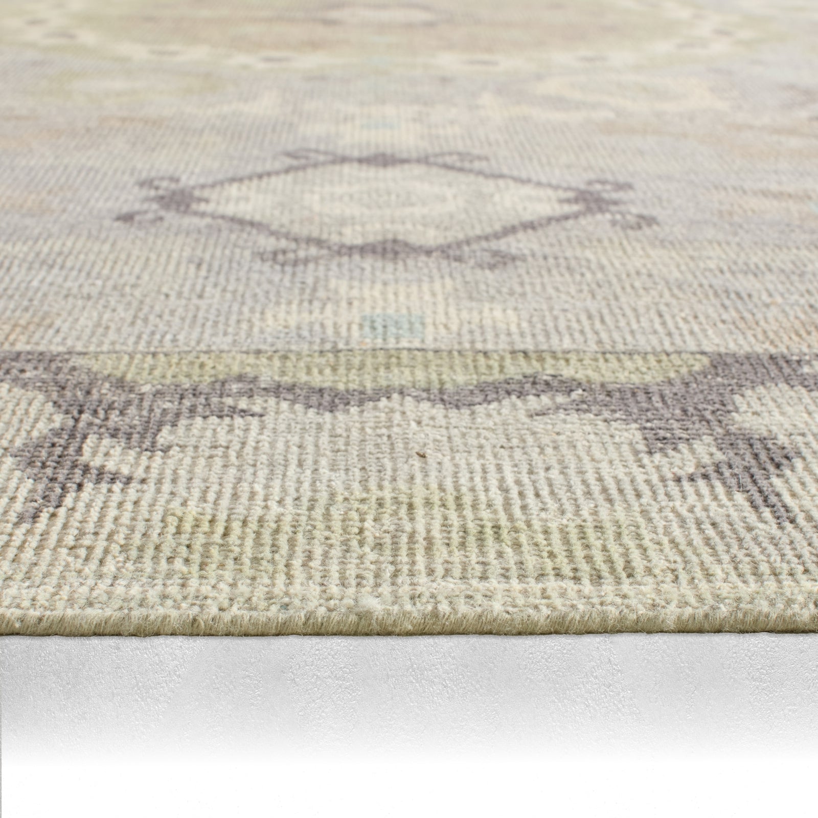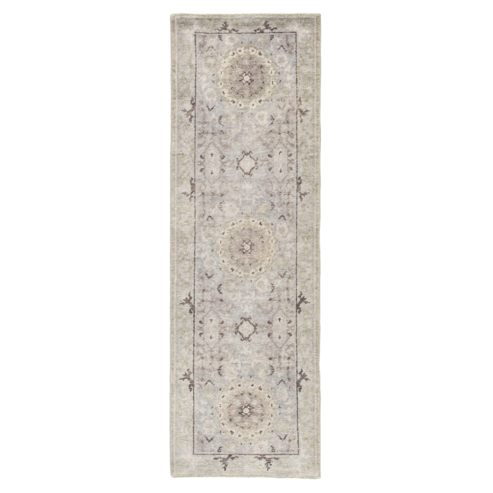 Exceptionally made and artfully designed, this hand-knotted area rug infuses contemporary homes with vintage allure. This wool accent boasts an elegant center medallion and scrolling details for a worldly dose of style. Muted blue and gray tones offer a versatile look to the timeless design.