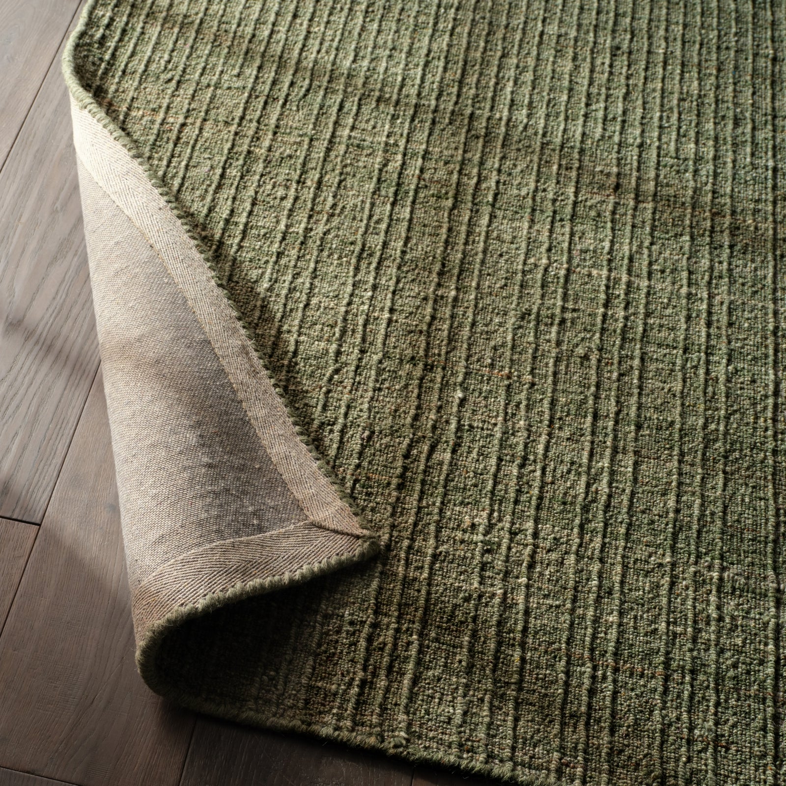 A classic handwoven construction with clean, contemporary appeal, the Amity collection brings interest and grounding texture to on-trend spaces. The Vidalia area rug features a heathered green hue with flecks of cream, brown, and beige. A ridged weave adds dimension and depth to any modern home. The fiber-dyed wool and durable PET blend of this collection lends the perfect accent to heavily trafficked areas of the home such as living rooms, halls, and entryways.