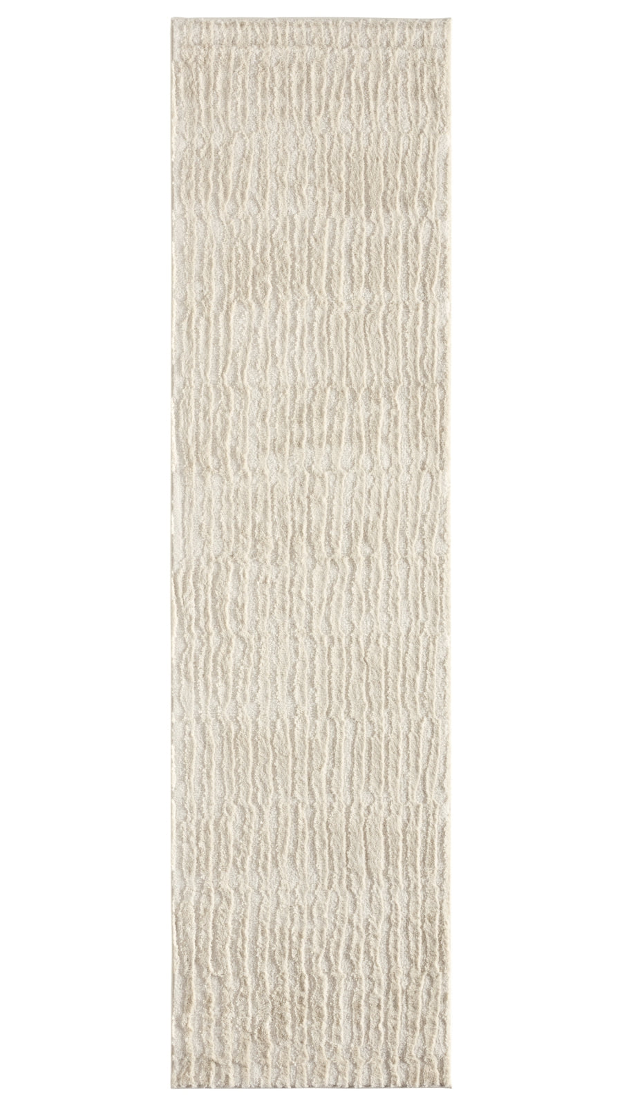 Modern geometrics and a lustrous sheen define the Calix Collection by Nikki Chu. The soft, plush pile features high and low areas for added texture that delights underfoot. The Terza design showcases a cream, abstract stripe pattern. Polypropylene and polyester blend provides natural stain resistance and low maintenance care. This rug best suits medium-traffic spaces of the home, such as living rooms, bedrooms, and dining rooms.