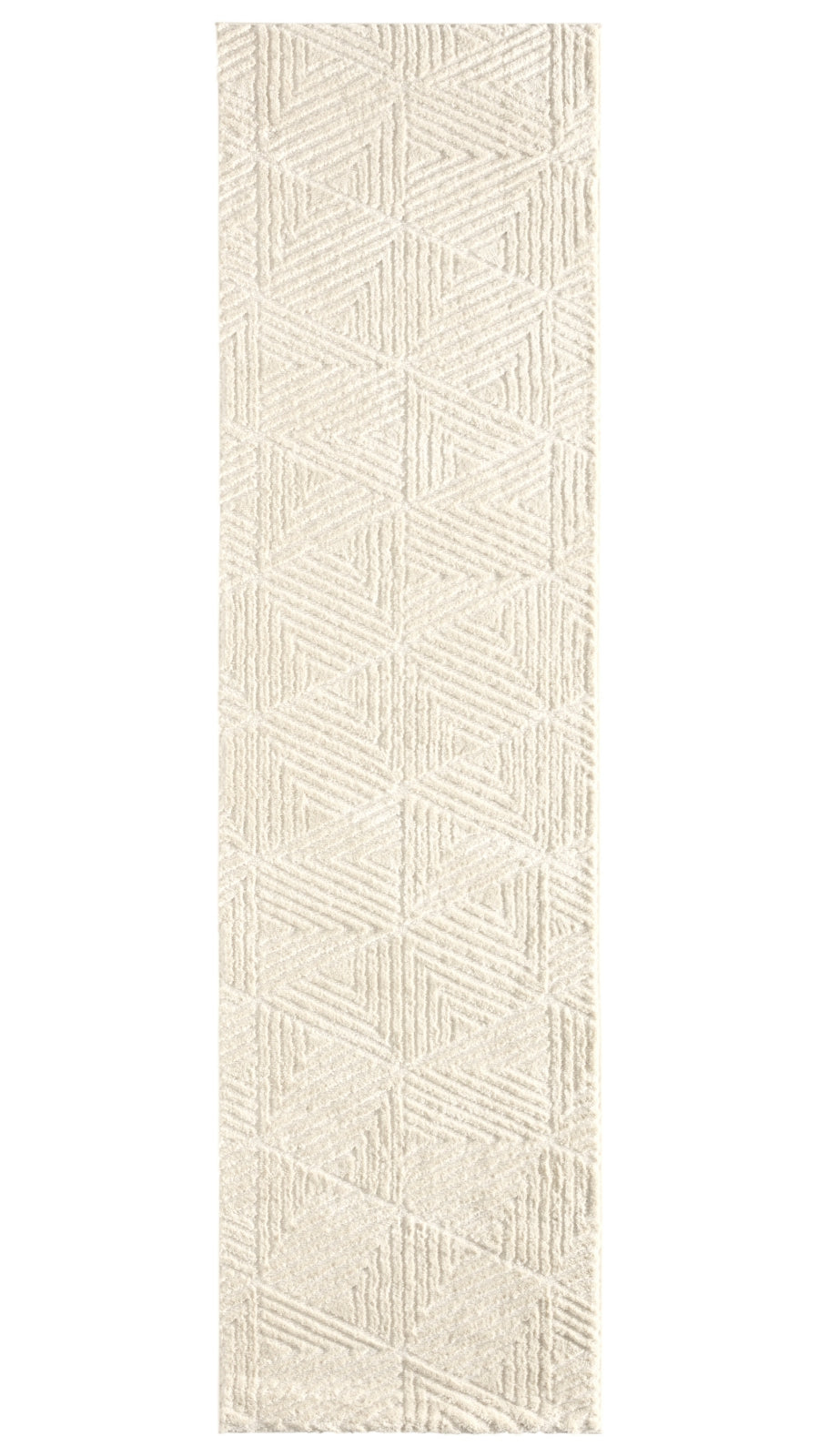 Modern geometrics and a lustrous sheen define the Calix Collection by Nikki Chu. The soft, plush pile features high and low areas for added texture that delights underfoot. The Ziazan design showcases a cream, geometric, triangle pattern. Polypropylene and polyester blend provides natural stain resistance and low maintenance care. This rug best suits medium-traffic spaces of the home, such as living rooms, bedrooms, and dining rooms.