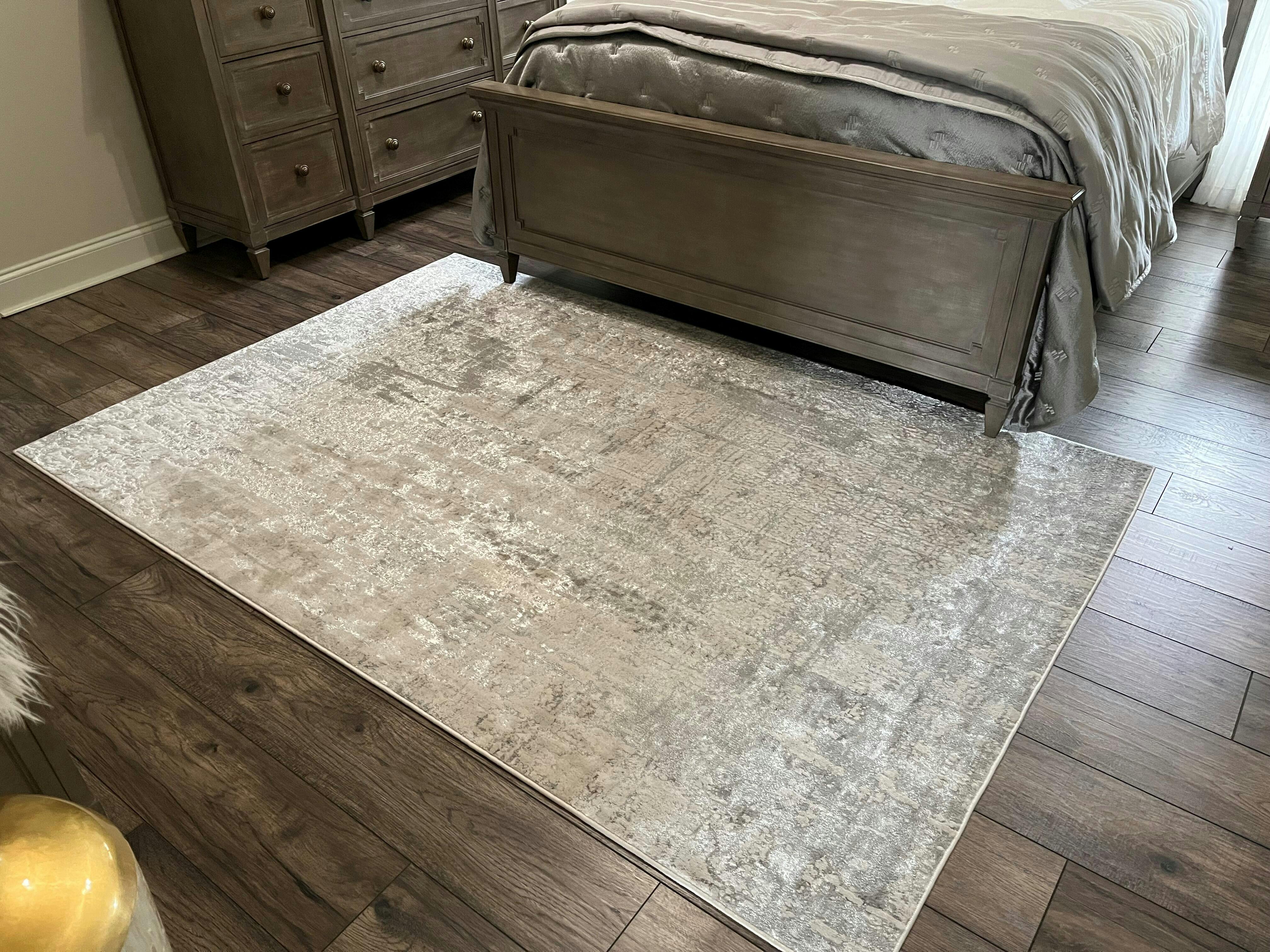 The show-stopping yet surprisingly versatile appeal of the Catalyst collection brings contemporary edge to any home. The neutral Calibra rug features a chic abstract design tones of ivory, gray, and silver. This power-loomed rug features metallic polyester fibers blended with stain-resistant polypropylene for a brilliant sheen from various perspectives. Colors include: 17-1500 Steeple Gray, 13-0002 White Sand, 16-5101 Wet Weather, 16-3915 Alloy