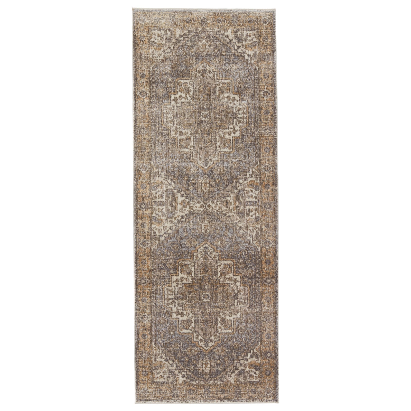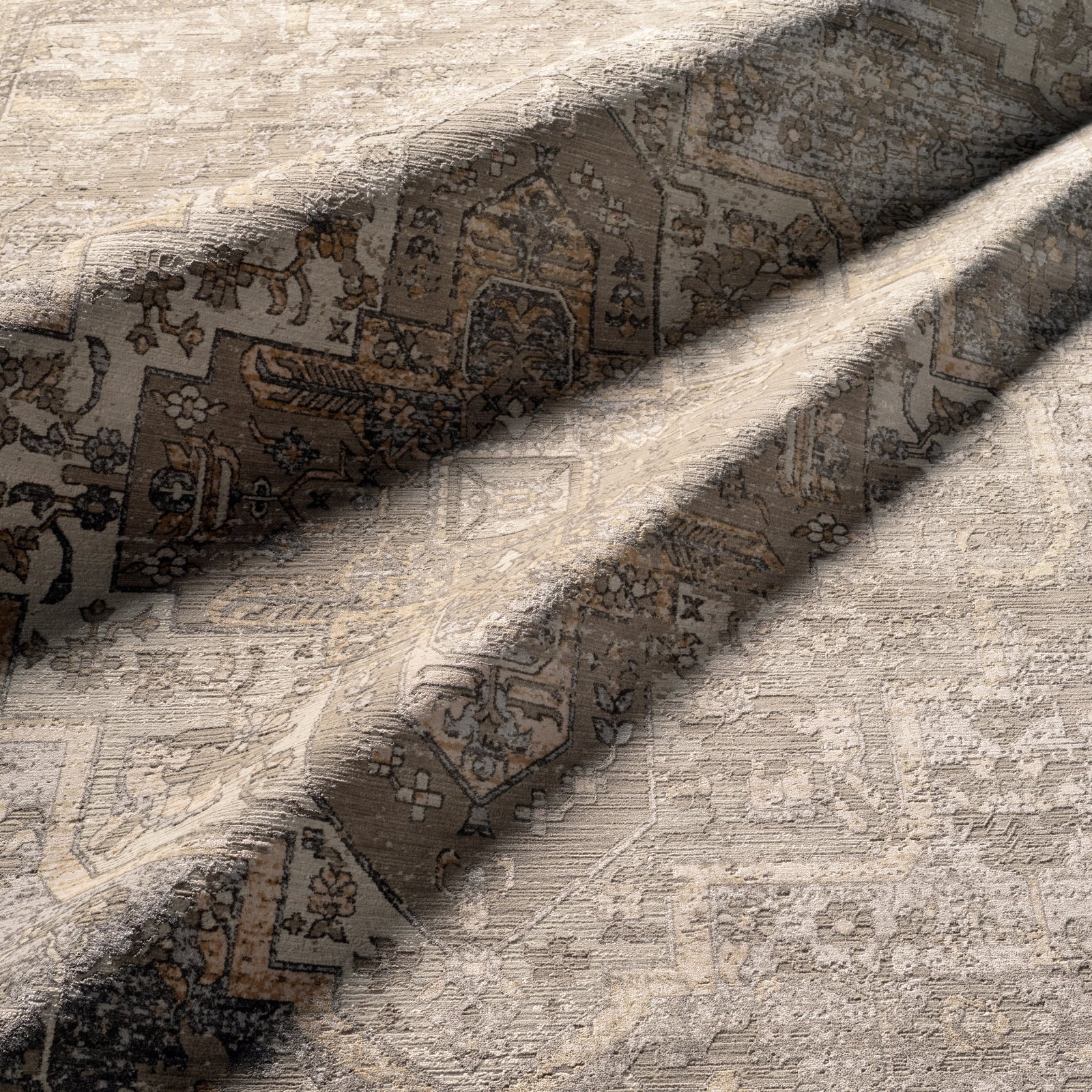 The stunning En Blanc collection captures the elegance of neutral, vintage-inspired patterns and melds Old World aesthetics with an updated and luxurious vibe. The Venn rug boasts an ornate center medallion motif in tonal hues of gray, light taupe, and golden tan. Soft and lustrous, this chameleon-like design emulates the timeless style of a Turkish hand-knotted rug, but in an accessible polyester and viscose power-loomed quality.