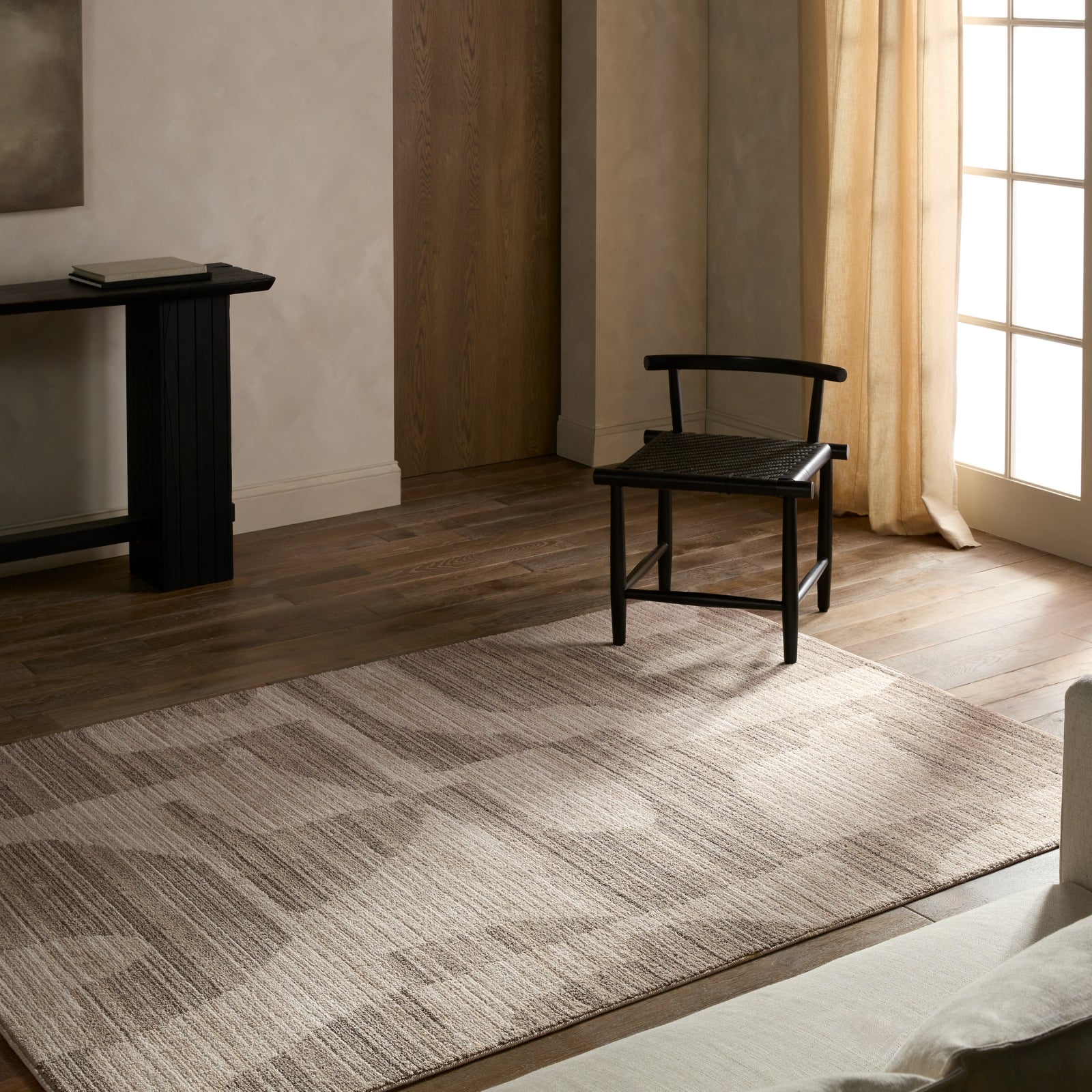 The Eva collection adapts to any aesthetic and matches any mood. Its modern geometric pattern and tonal light and dark beige hues effortlessly add visual interest to any room. Polyester is powerloomed with variegated yarn to look like wool-without the price tag.