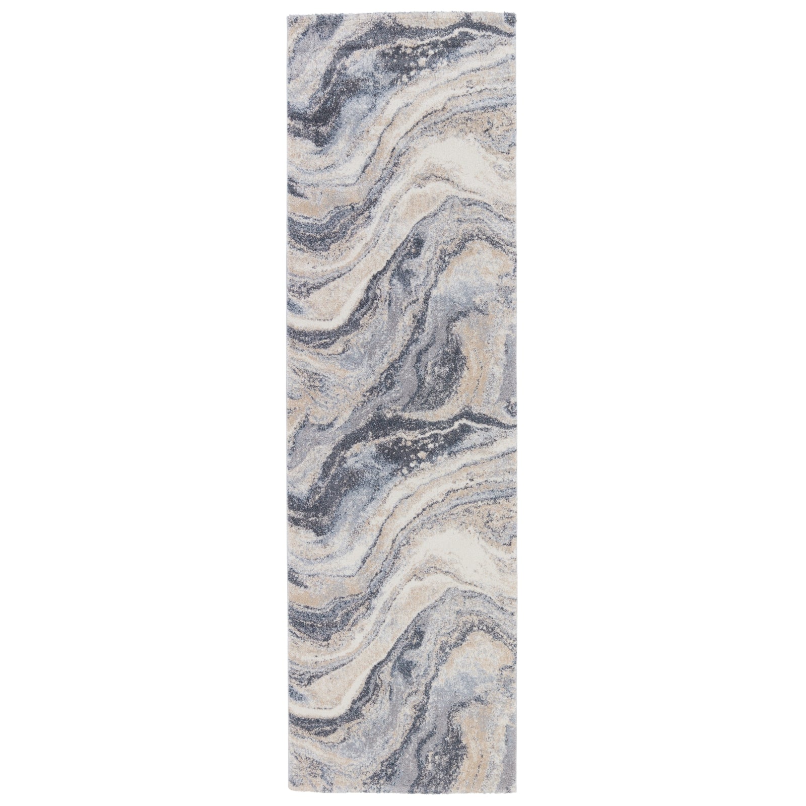 Serene hues and industrial style meld together to define the fresh, contemporary appeal of the Ferris collection. The Orion design features an agate-inspired abstract motif in tones of blue, gray, ivory, and hints of warm beige. This plush rug boasts added texture with carved, high-low details throughout the durable polyester and polypropylene pile.