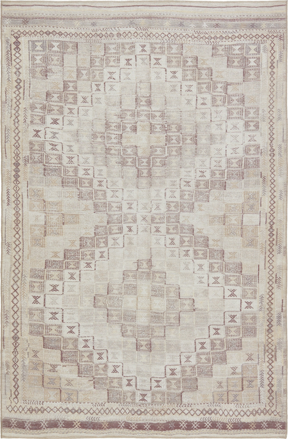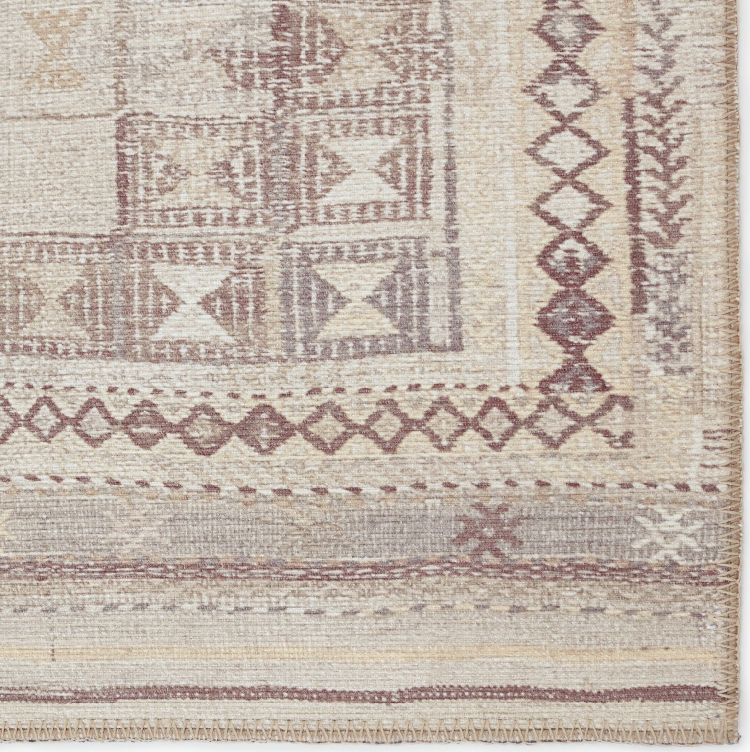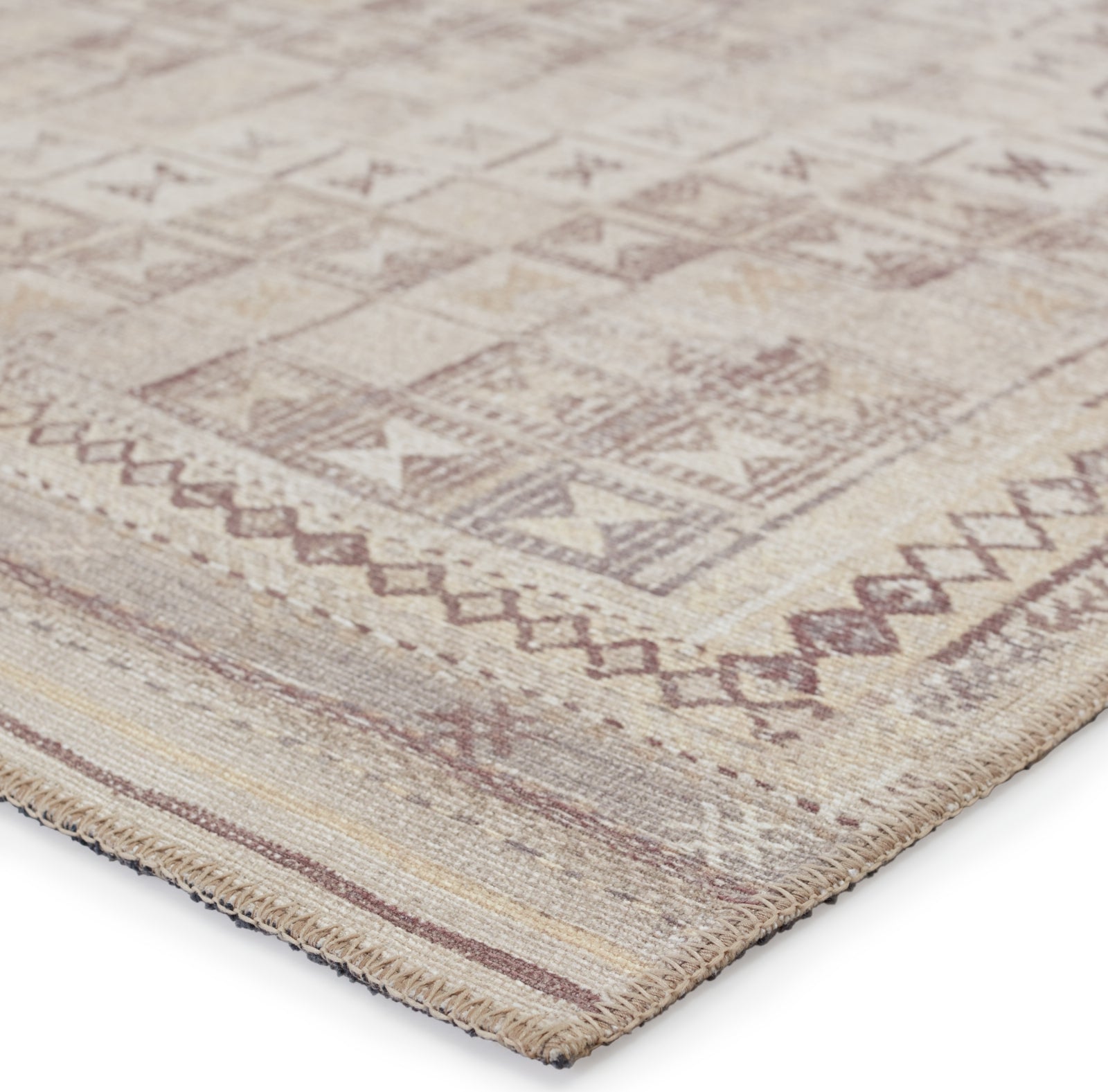 Inspired by well-traveled vintage designs, Kate Lester has joined with Jaipur Living to launch the Harman collection. This impressive assortment of antique textile designs lends heirloom-quality looks and livable style to any space. The Davina area rug showcases a tribal diamond pattern emphasized by hues of beige, cream and burgundy. This digitally printed rug boasts a perfectly distressed effect for effortless charm that is matched with durability to stand up to heavily trafficked spaces such as entryways, halls, kitchens, and living rooms.