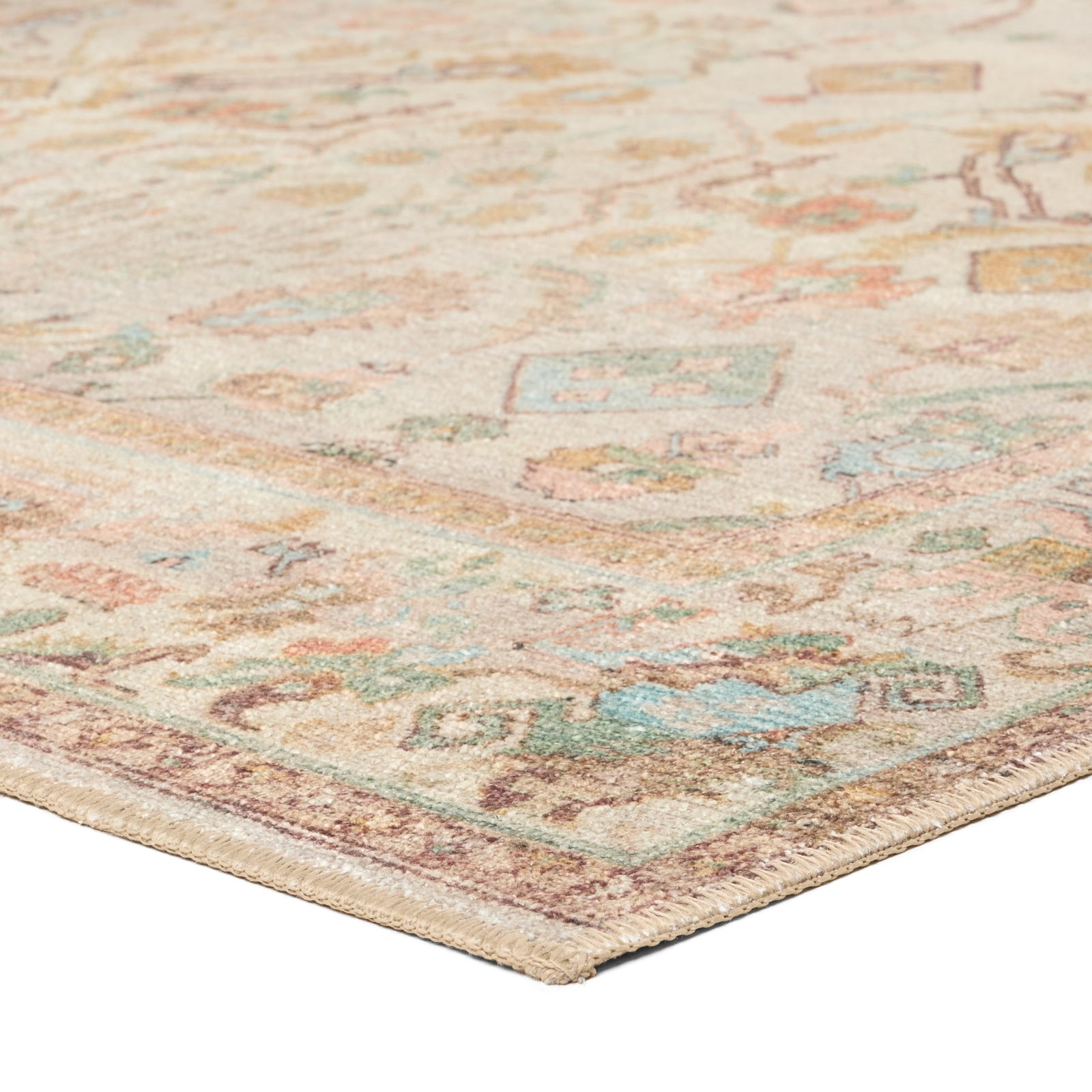 The Kindred collection melds the timelessness of vintage designs with modern, livable style. The Avin rug's blush, wine, green and golden, earthy tones ground spaces with luxe appeal and an ornate, classic motif. This low-pile rug is made of soft polyester and features a stunning, Old World-inspired digitally printed design.