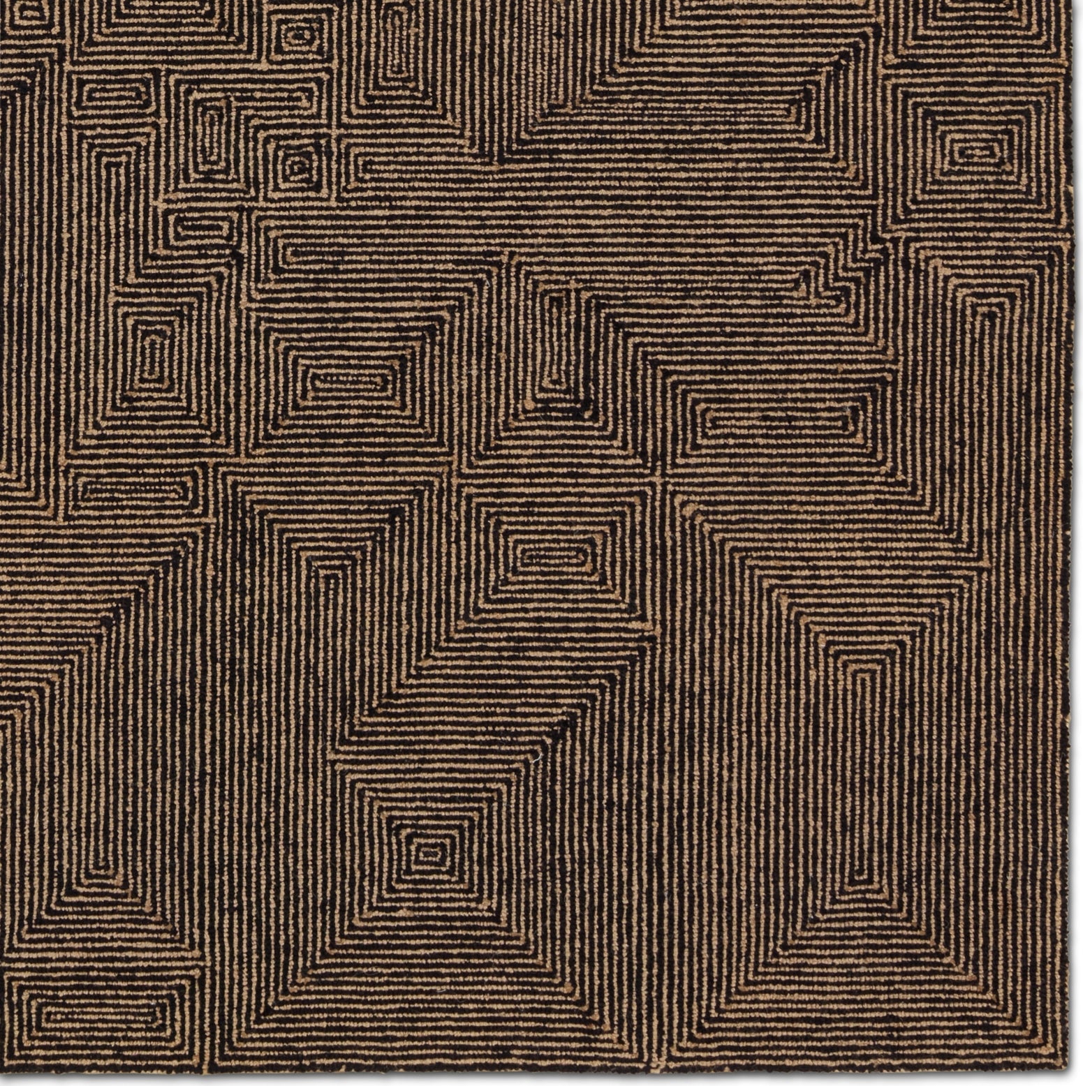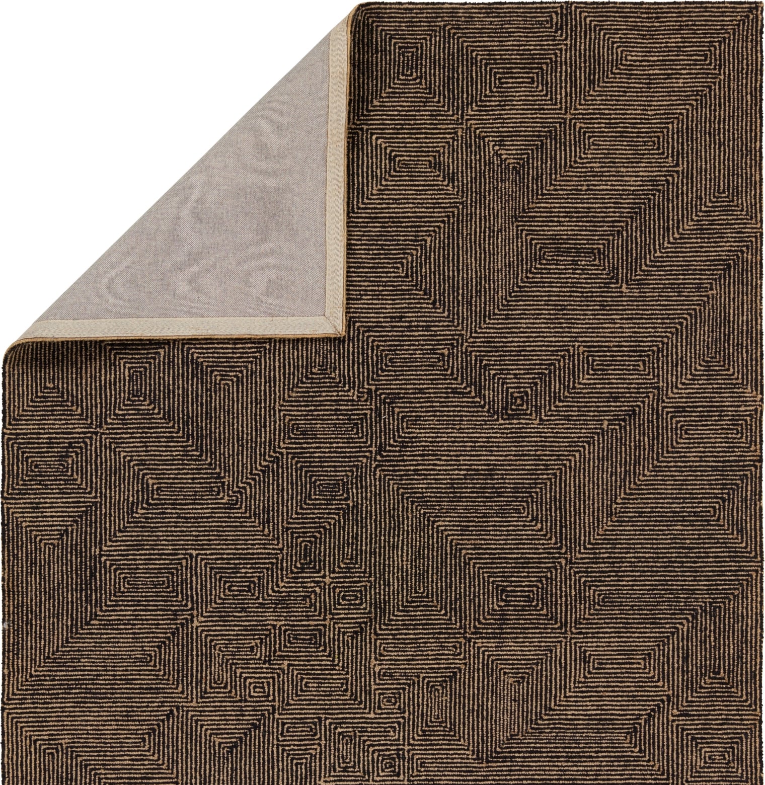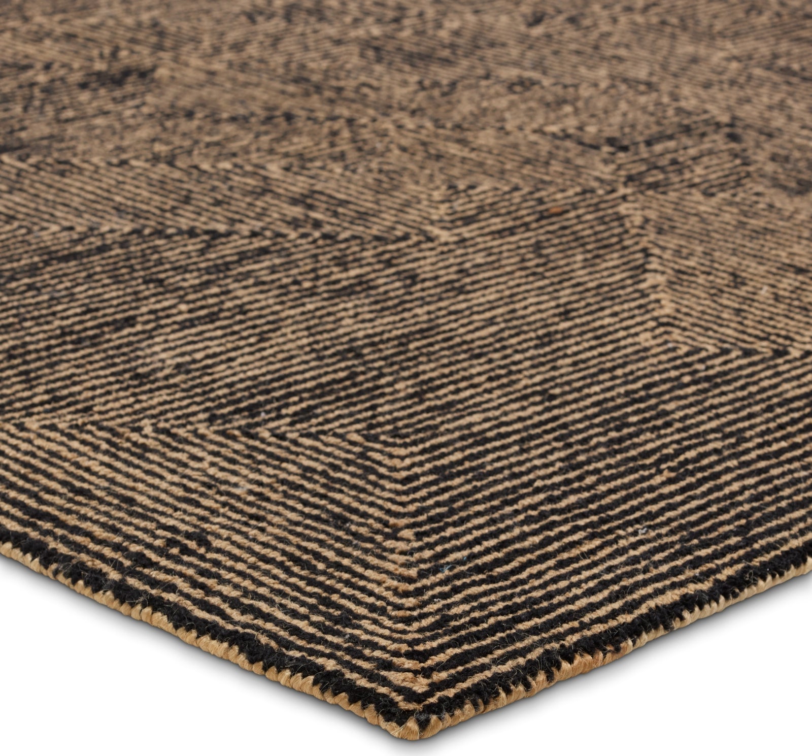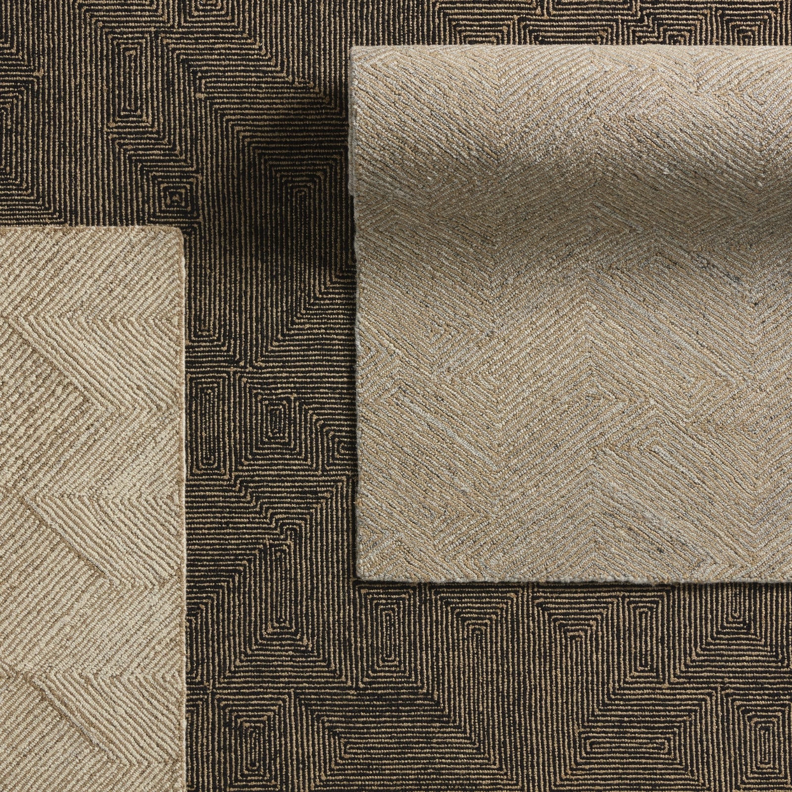 Hand-tufted of hardy jute and soft wool, the Mercia collection brings textural details and contemporary appeal with unique linear motifs and neutral colorways. The tan and black looped pile of the Quarion rug provides a global appeal that pairs perfectly with an intriguing geometric design. These natural fibers work best in a low traffic area of the home.