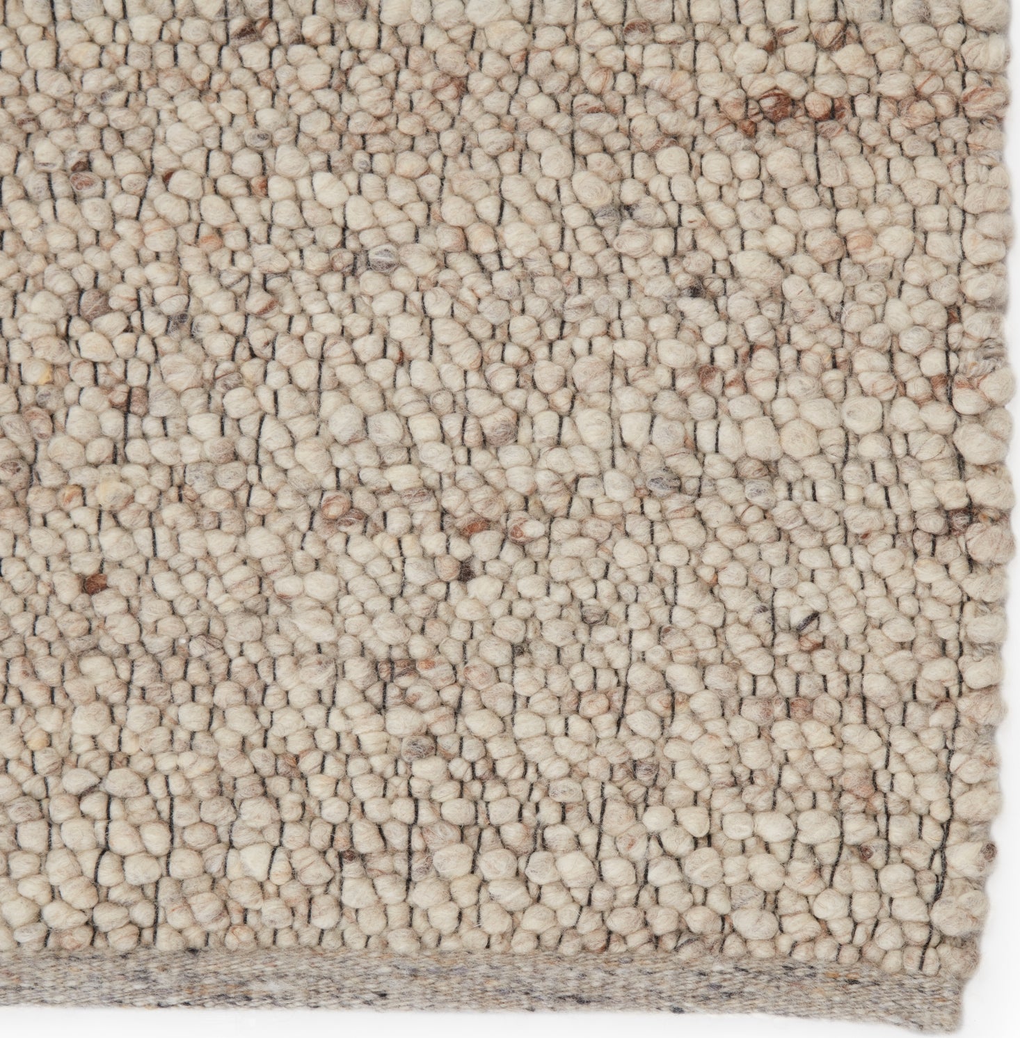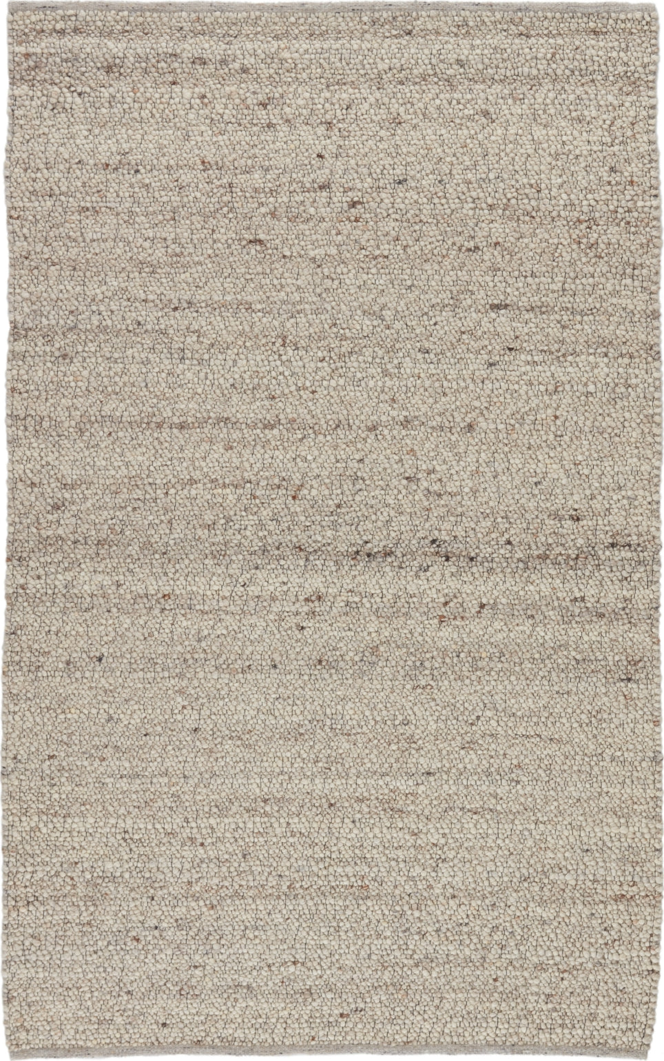 The Quiet Time collection offers textural yet solid designs for modern spaces in need of a relaxed and inviting accent. Handwoven of wool and jute, the Hadren rug showcases a texture-rich boucle design with neutral hues of cream, ivory, brown, and light gray. This grounding rug is perfect for layering with other textile mediums or complementing a hygge-centric home.