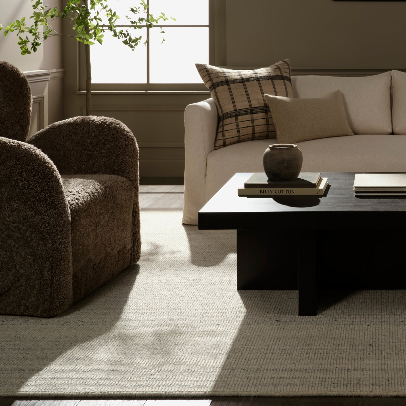 Anchor your space with the rich texture of Mere. 100% wool is handspun with generous loops to offer distinct dimension in light gray and cream hues. Easy to design around, it's a flawless fit for practically any room and interior style.