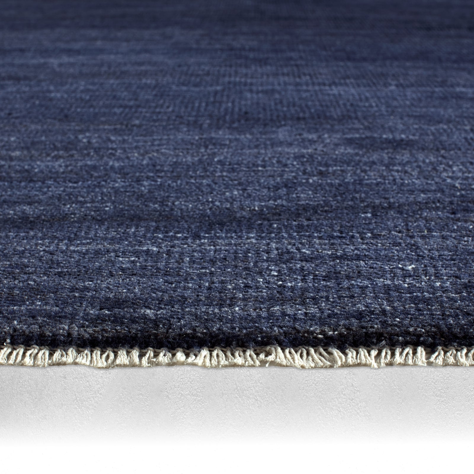The sophisticated Saga collection lends balance and a relaxed, grounding vibe to modern interiors. The Origin area rug anchors a space with a solid, subtly striated design in a rich blue colorway. Hand knotted by skilled artisans, this durable wool accent marries simplicity and luxury with an exceptional quality.