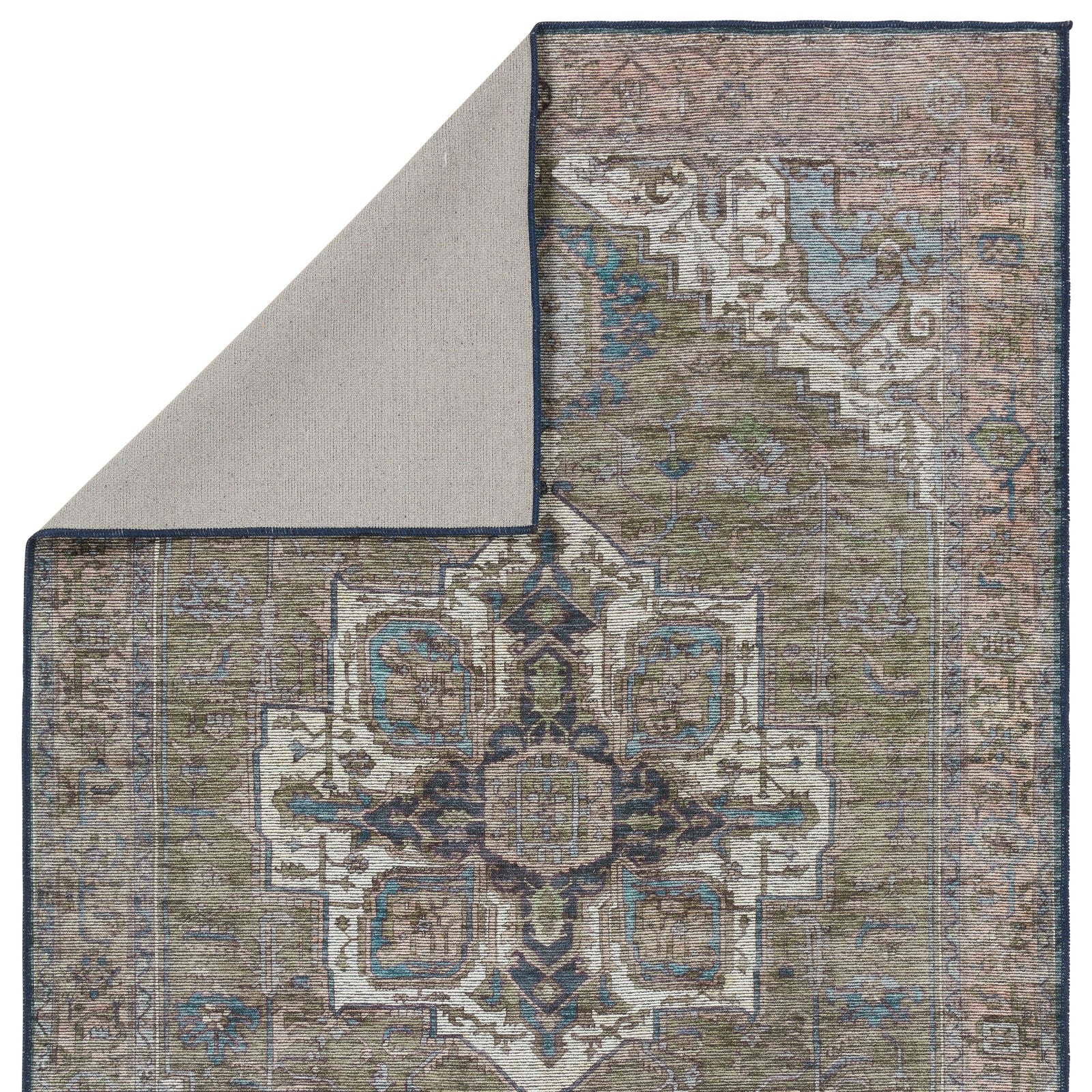 The Vindage collection melds vintage inspiration with on-trend colorways and durability for lived-in spaces. This digitally printed assortment features deep, rich tones and stunning abrashed designs that lend heirloom style to any home. The Chaplin area rug depicts a distressed medallion pattern with floral detailing in rich tones of green, blue, dark brown, pink, cream, and navy. The easy-care design withstands pets, children, and high traffic areas of the home such as living rooms, dining areas, kitchens, and bathrooms.