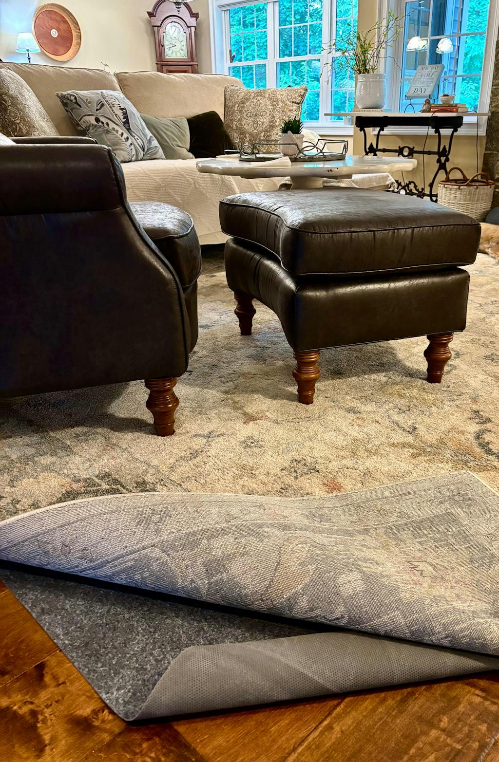 We are very pleased with our Karastan reversible rubber/felt “specialized thin” rug pad.We had concerns initially when searching out various rug pad options for our beautiful new “Incredible rug”,to prevent the trip factor from our wooden floors unto our family room carpet.We discussed this before ordering with company customer service rep,”Emily”,and decided to place our order with her great recommendations in mind.