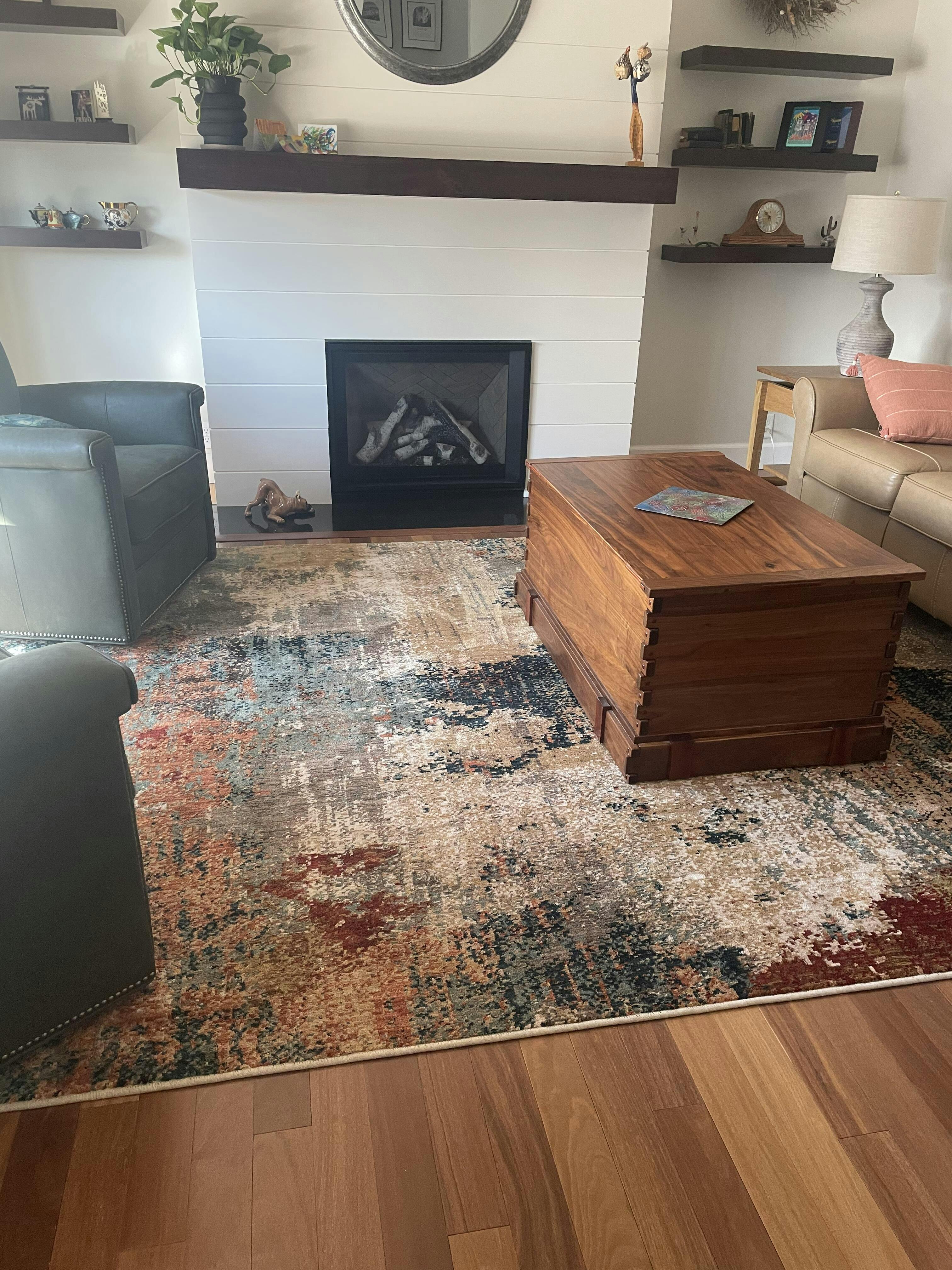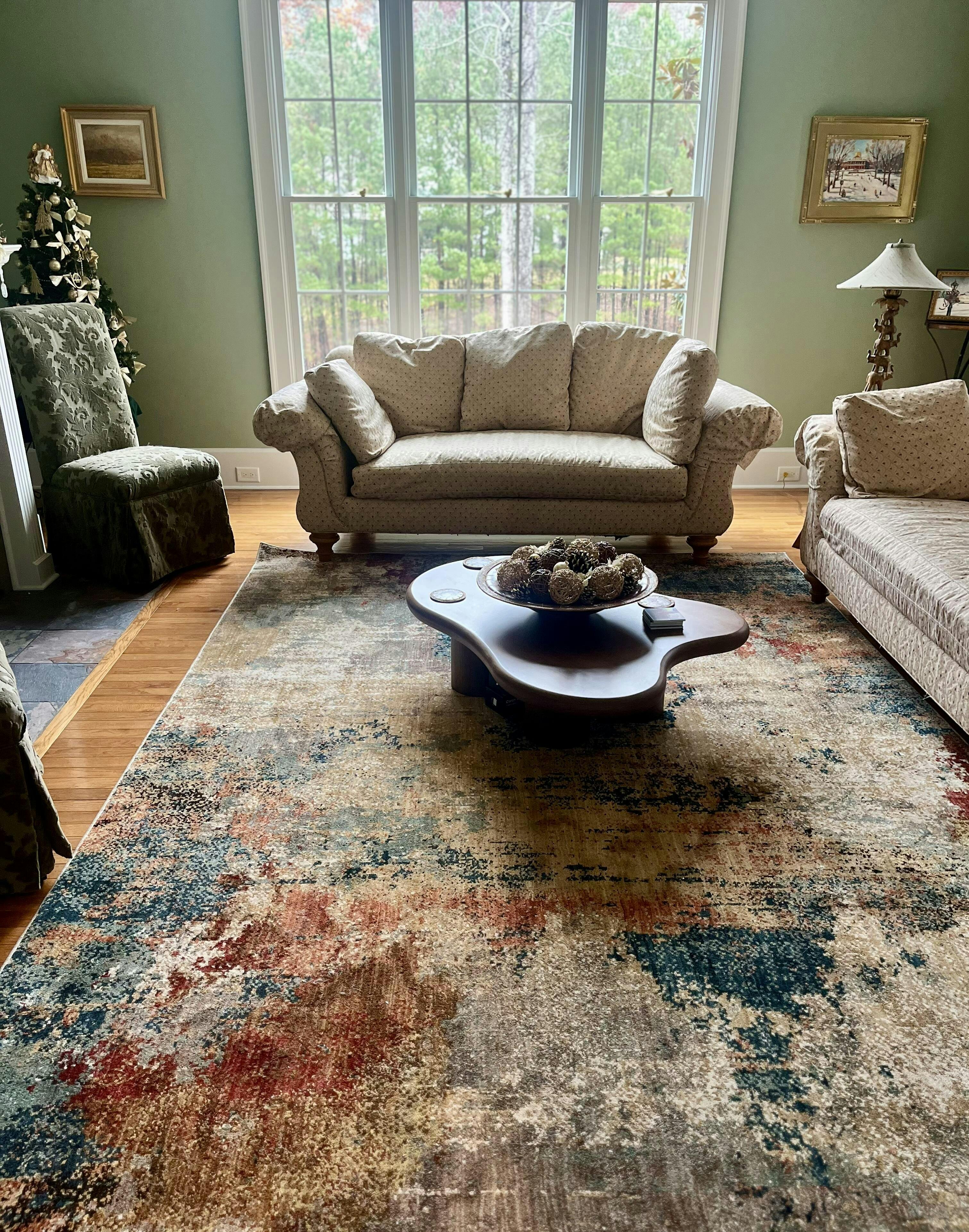 I chose this rug after being able to see it in the room with the on-line tool. Astonishingly I would not have chosen these colors but it really made the room look more alive. The price was great compared to other websites and it arrived quickly, well wrapped and delivered to my door.