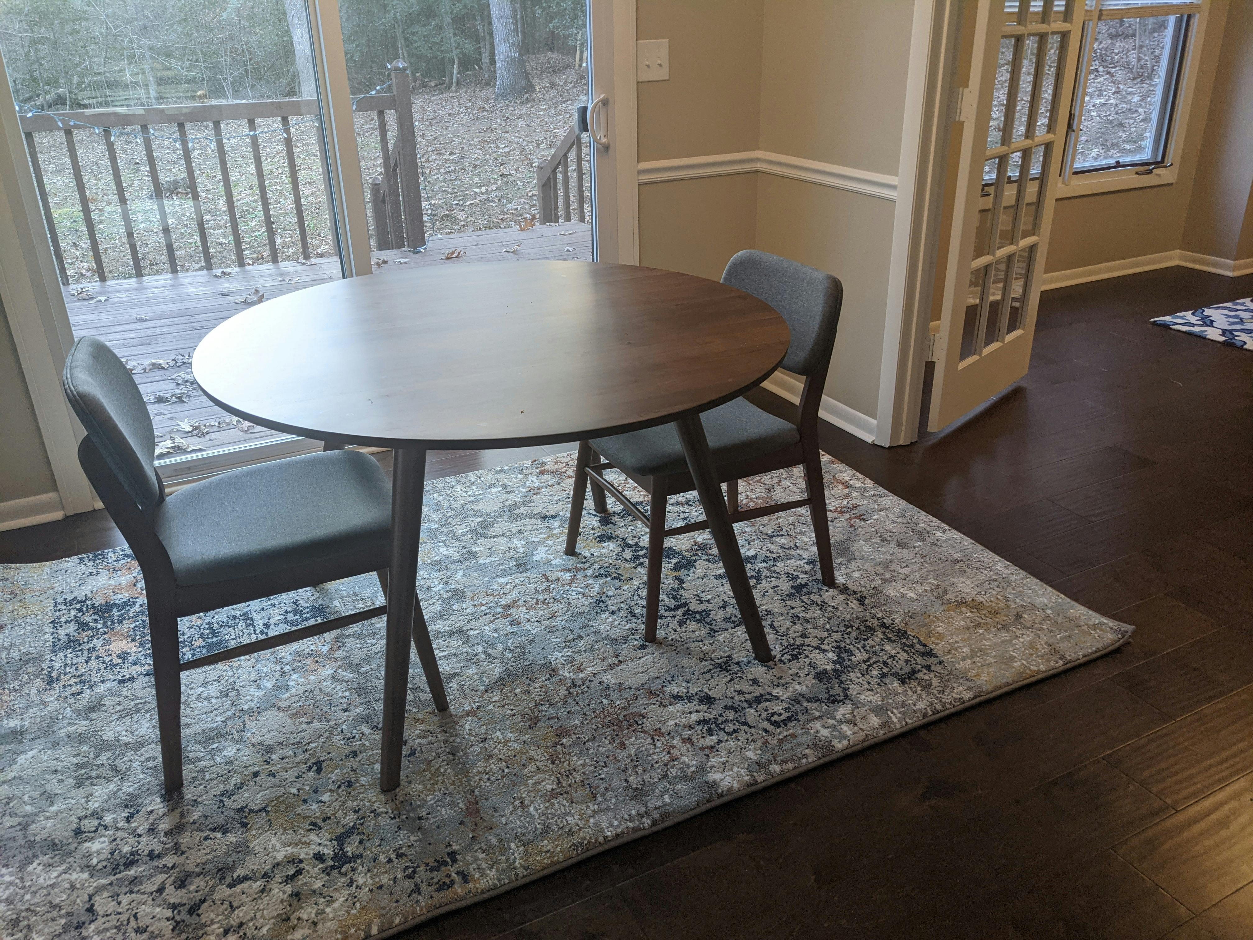 This rug has made our breakfast experience much more enjoyable. We have put this under our kitchen table, and it is plush and thick. It feels amazing on bare feet. In addition, it's gorgeous. We love this rug.