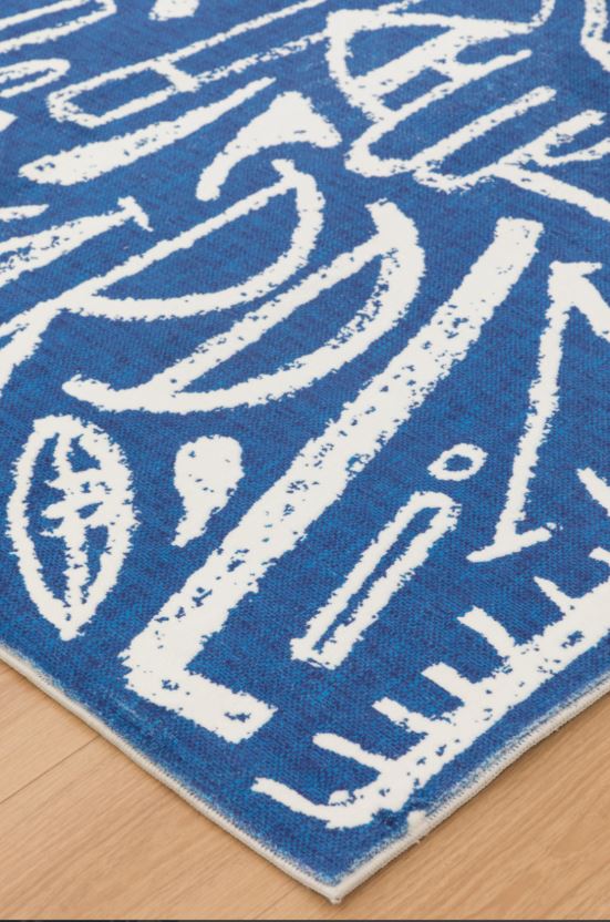 Noted mural artist Katie Merz has created a delightful sports-themed rug collection that depicts her highly distinctive glyph-art style. The artist's spontaneous and wildly oriented hieroglyphs are densely sandwiched together to illustrate the various images, icons, actions, language, energy and essence of a number of today's most popular sports. Power-loomed using 100% polyester yarns.
