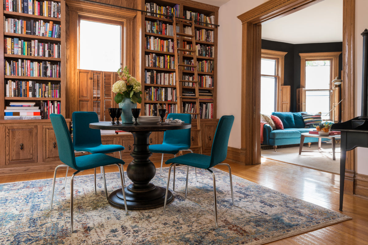 My husband and brought home a small size of this rug to see if we liked it in our dining room. After getting a price at the store with a waiting time of 6-12 wks, I went on line and found a great price on Incredible Rugs. And the rug was delivered within 3 days at no charge ! A dining room with dark floors and dark upholstered chairs has now come to light with our new Loloi Anastasia AF-Sand/ Light Blue rug.