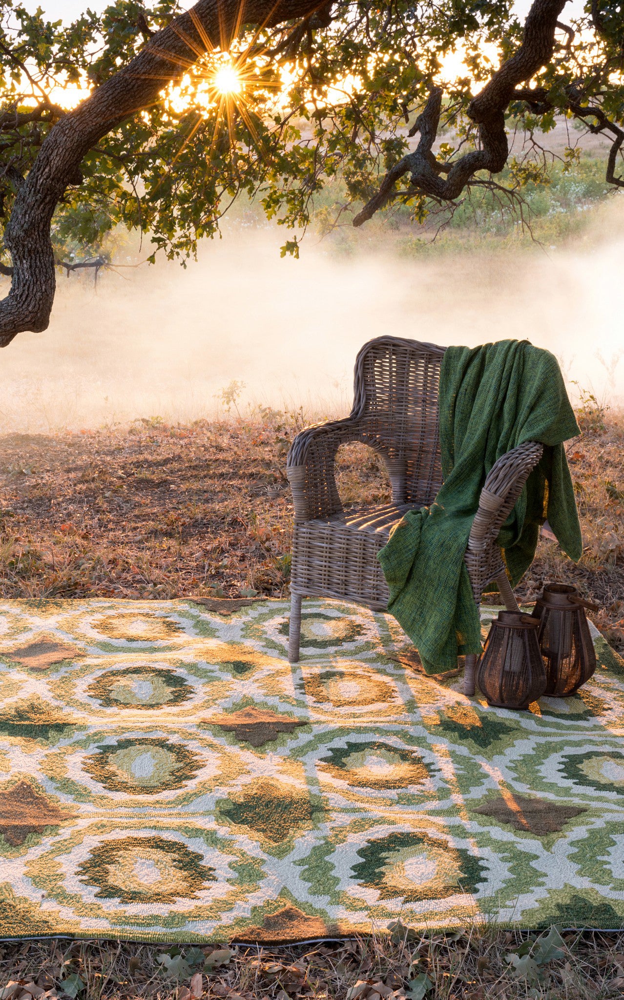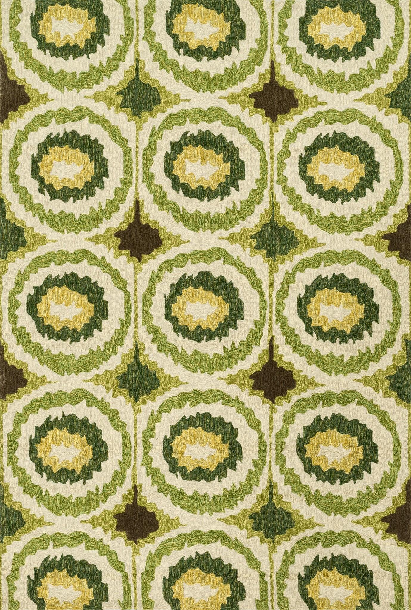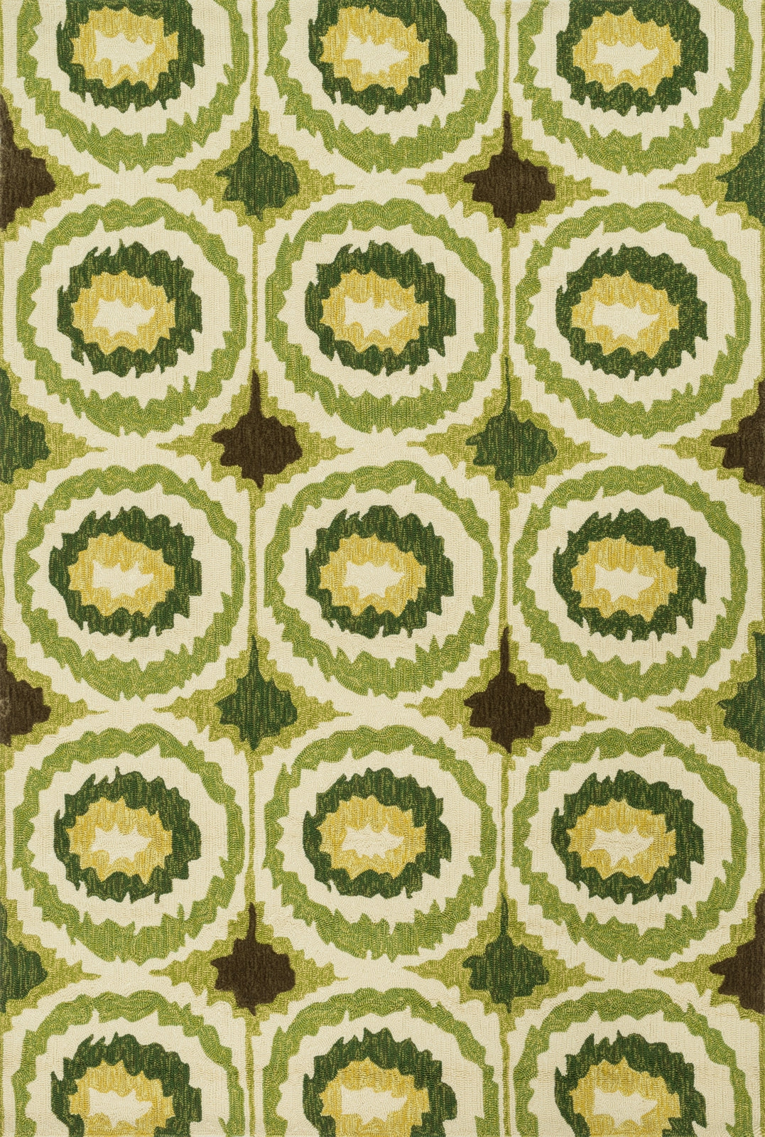 The Enzo Collection takes this high-fashion pattern outdoors. The allover Ikat designs enjoy a rich, bold, bright palette. The hand-hooked polypropylene and polyester rugs feature three dimensions of texture including hooks and cut pile for an overall look that exceeds expectations for an outdoor product.