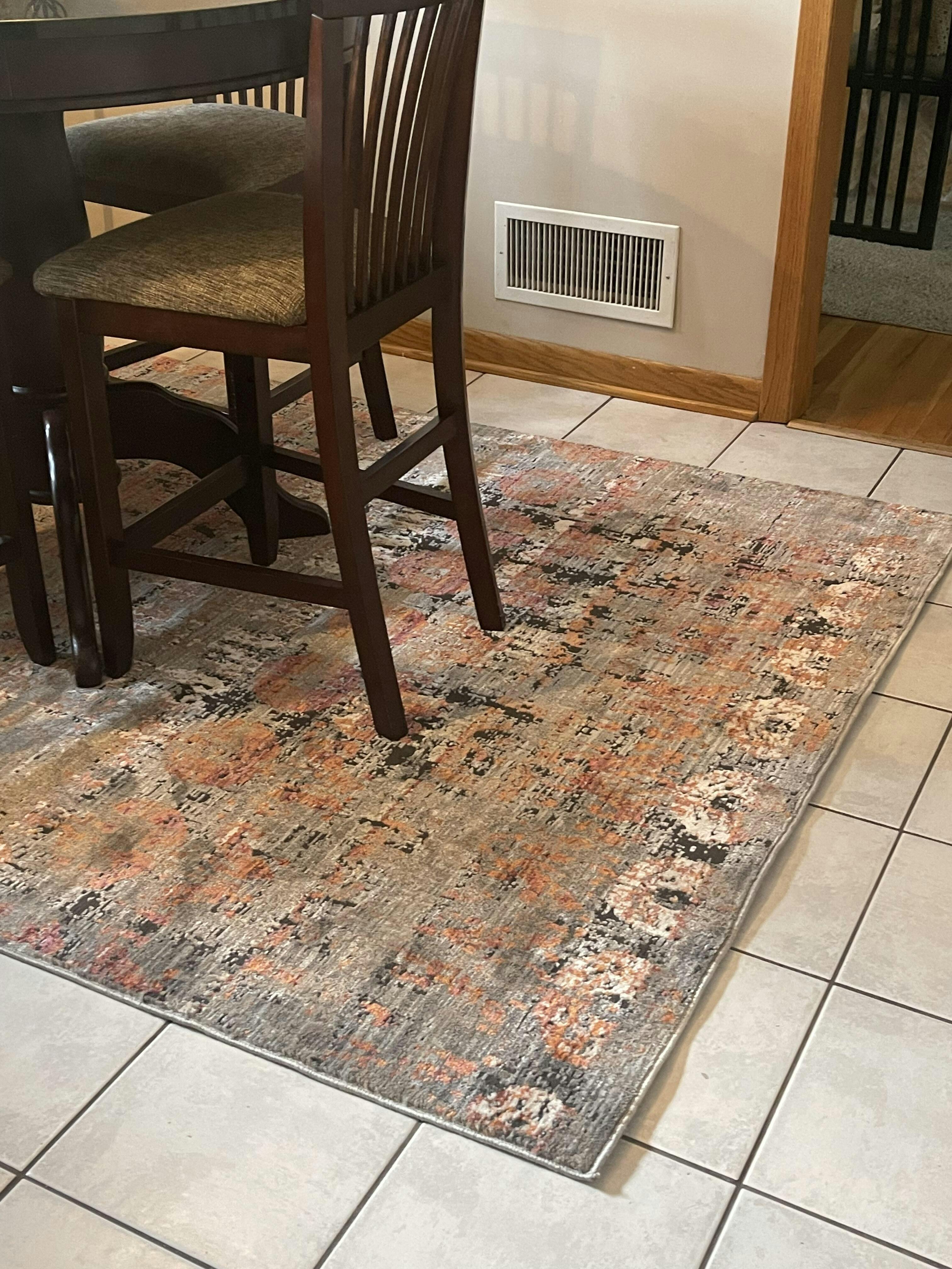 First time shopping with Incredible Rugs & Decor. I was attracted to this rug, I liked the colors that I ‘saw’ but It was a leap of faith because the color chips were very deceiving, so I ordered a sample to get a better idea of the colors. It was a back and forth activity…. Almost a month to finally get the rug down in my kitchen nook area. Had to be very cognizant of how the rug read….one side lovely rich colors and then looking at it from a different direction somewhat washed out…. Anyways, it’s down and I am really thrilled with the transitional somewhat abstract design and the colors.