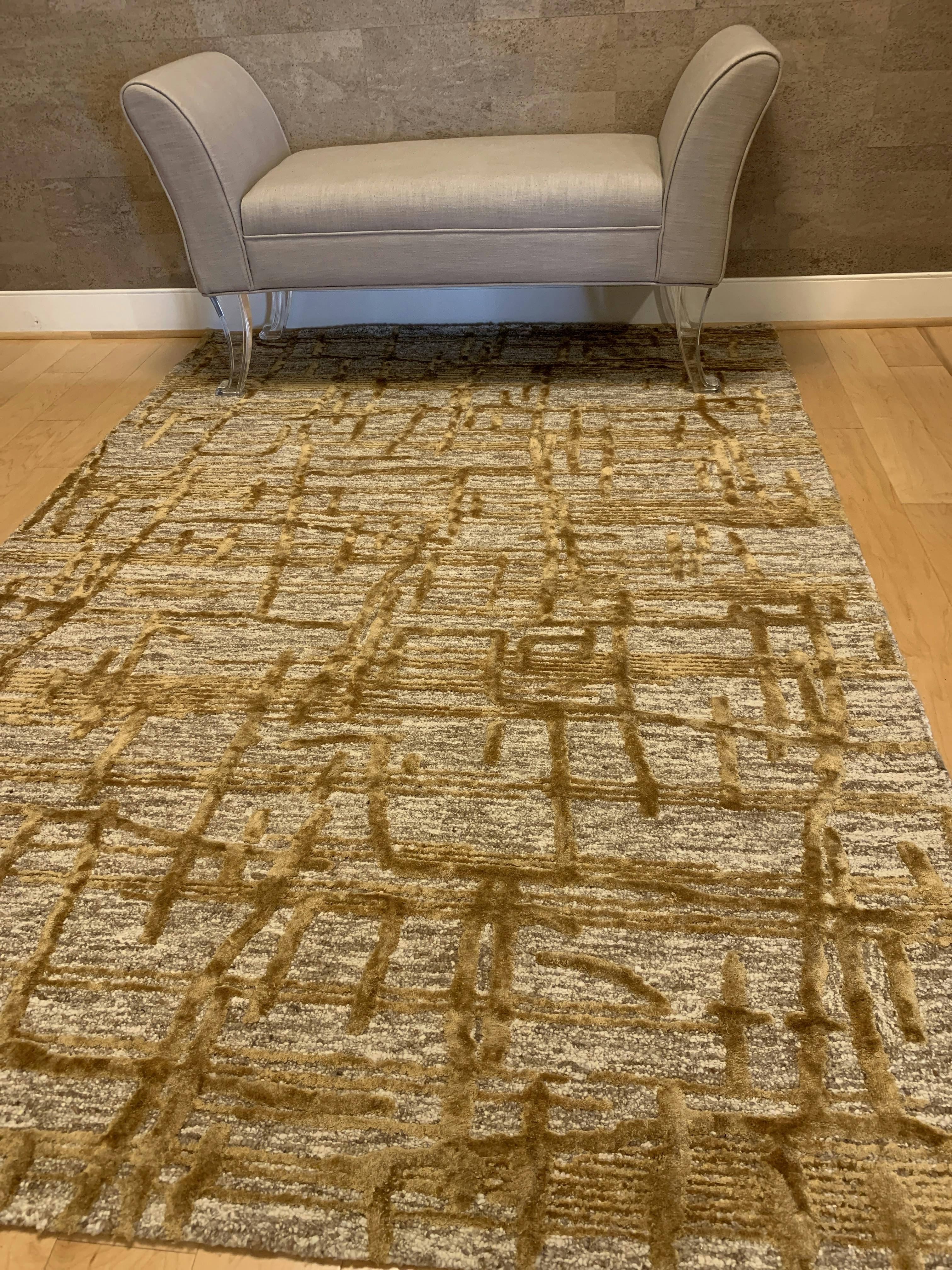Inspired by nature's most textured landscapes, the Juneau Collection offers a striking foundation to build your room around. Each piece is hand-tufted with rayon and wool by artisans in India for a silky shine that highlights the high and low effects in the pile.