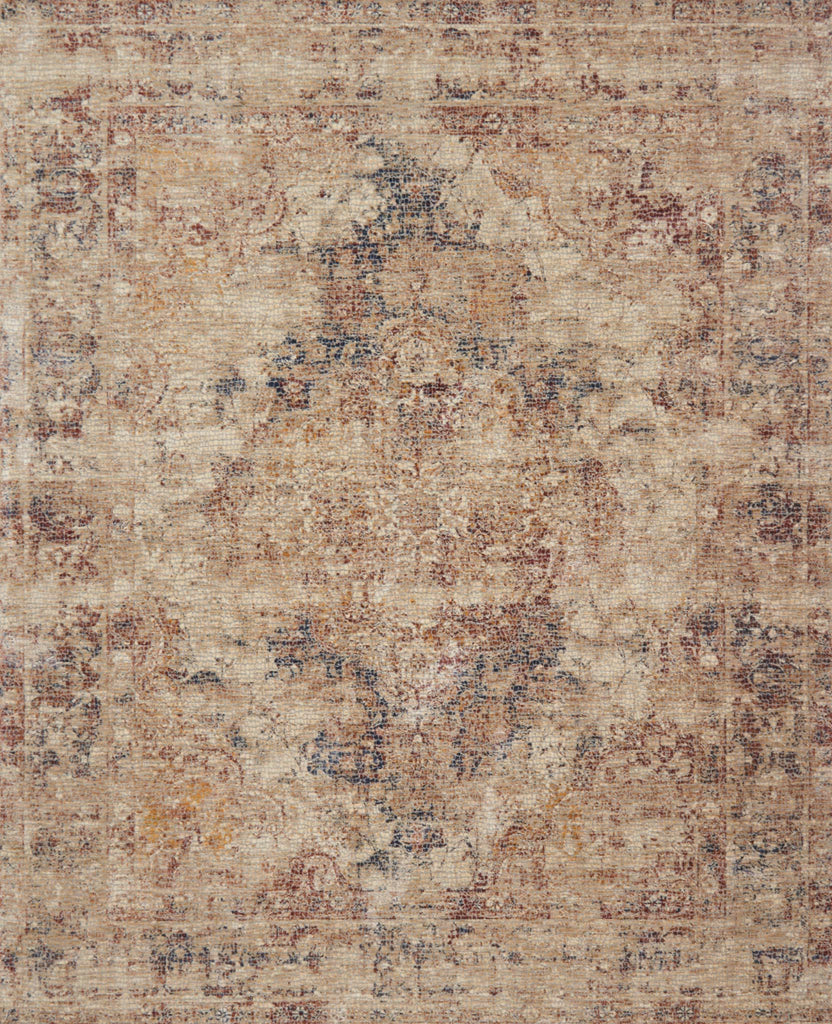 I am a huge fan of Loloi rugs... this is my 8th one! I was looking for a round rug to coordinate with another Loloi rug in the same space and this one delivered exactly as I had hoped! It is lighter and has more of a creamy off-white look over all versus what you can see in the stock pictures. There are hints of golden browns, rust, and a plum-dark blue color integrated into the alligatored textured pattern, which is STUNNING! This rug would complement many decor styles due to the aged/ somewhat indefinite patterning. I purchased the 9.6 round. It rolled out beautifully and was laying flat within a couple of hours. I am THRILLED with my purchase AND working with Incredible Rugs and Decor- I would highly recommend these guys, they were fantastic to work with and quickly answered all of my questions.