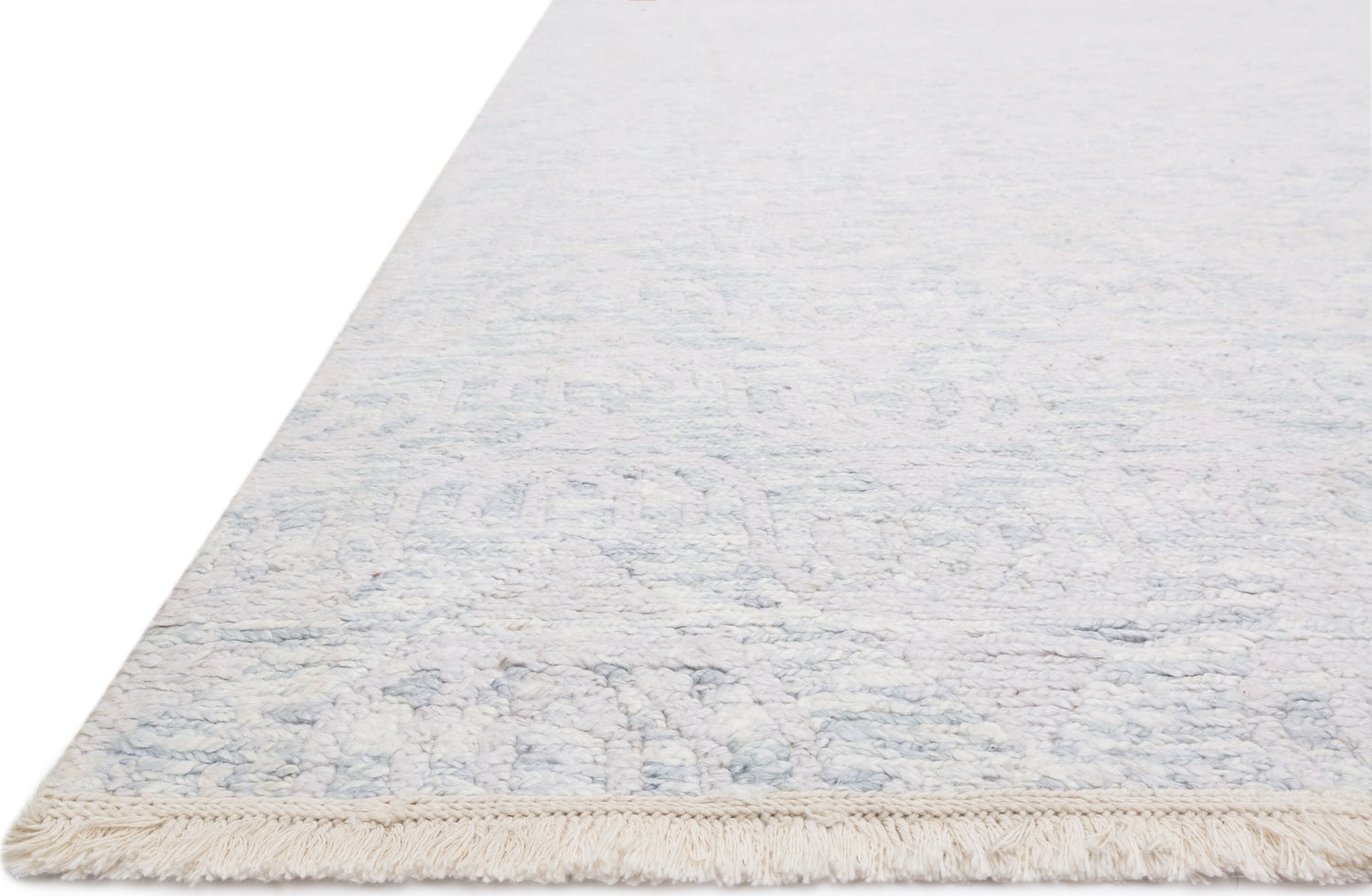 Hand knotted in India of 100% viscose from bamboo, the Reverie collection elevates your living space with subtle patterning hidden within a traditional sumac weave. Offered in soft neutrals and blues, each piece within this collection evokes a sense of calming elegance.