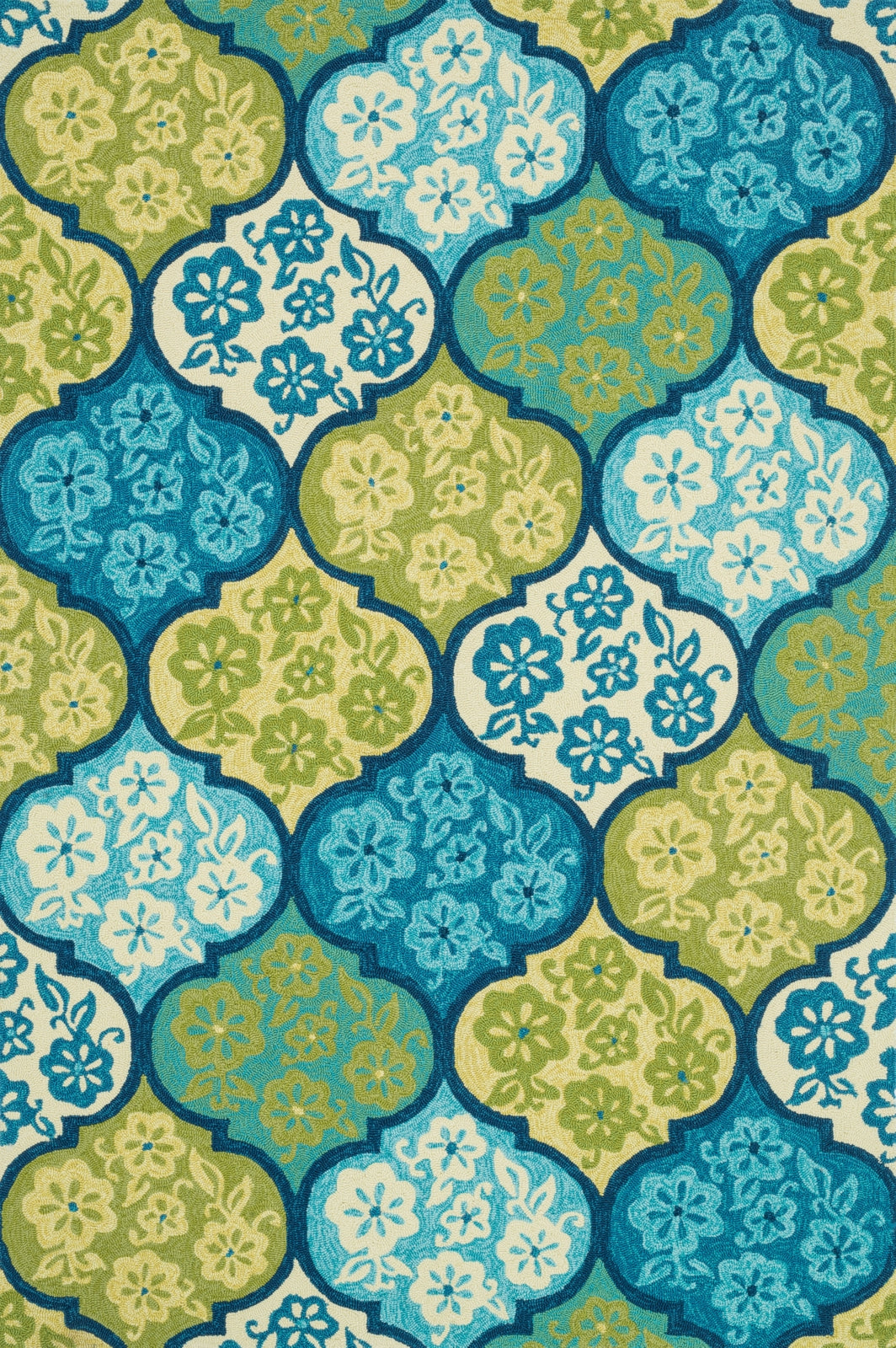 Set the foundation for a beautiful outdoor arear with the well-designed Ventura Collection. Hand-hooked in China of 100% polypropylene, Ventura's fresh geometric patterns and bright, on-trend colors will immediately update your patio or poolside with can't-miss style. Each Ventura rug is specially treated to withstand UV rays, rain, mold, and mildew, so it'll remain bold and bright no matter what weather nature brings.