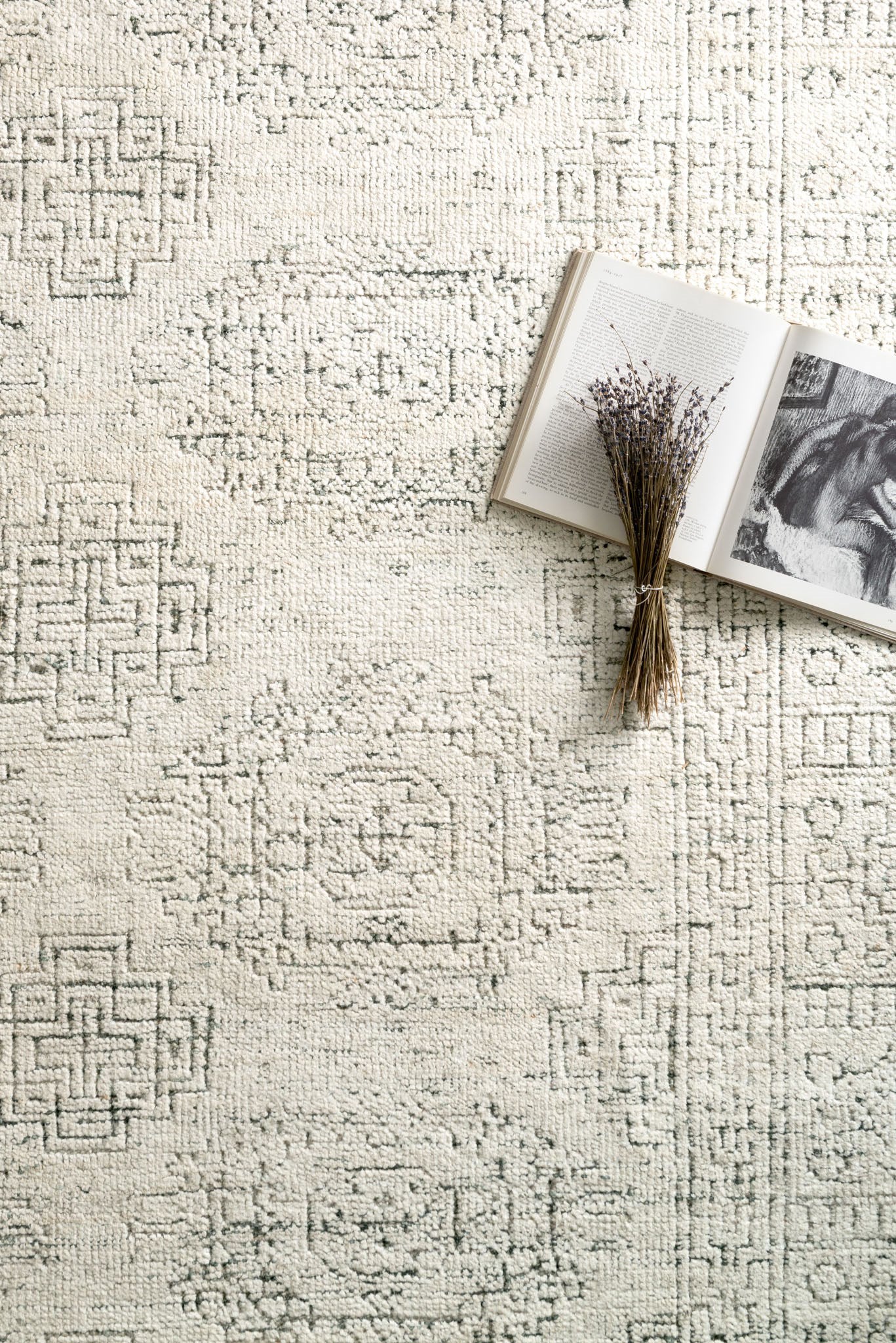 Hand-knotted in India of 100% viscose, the Vestige Collection recalls ancient khotan rugs in an updated color palette. Soft underfoot, the silken yarns temper the graphic motifs to create a versatile foundation.