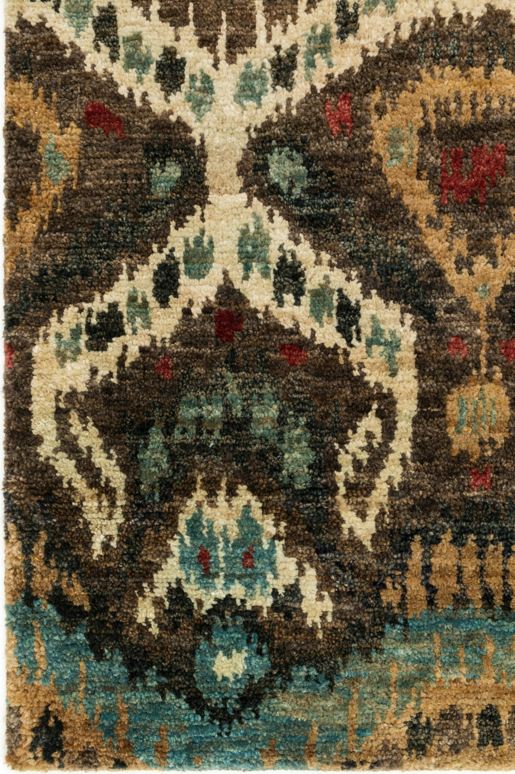 The sumptuous Xavier Collection is distinguished by its plush feel and bright, bold color palette. Hand knotted with 100% jute from India, Xavier's large scale Ikat design offers sophistication that works as an incredible centerpiece for a variety of
