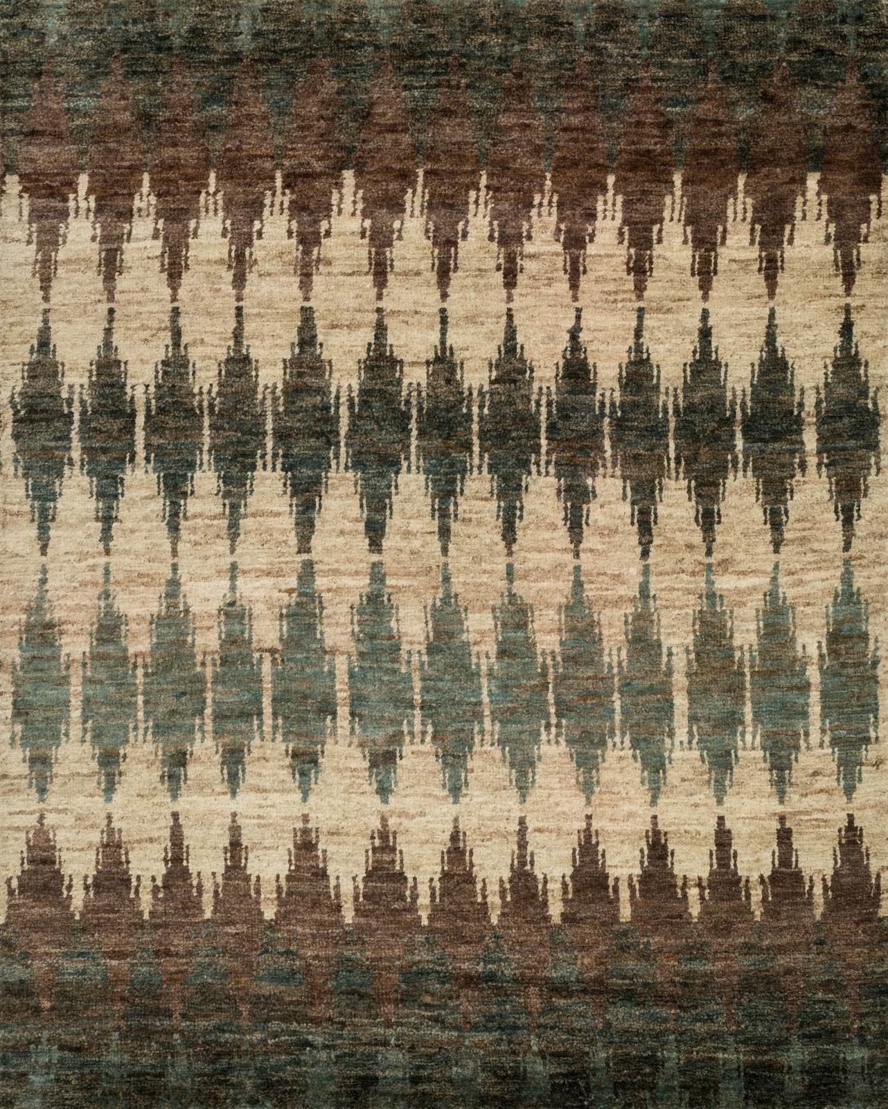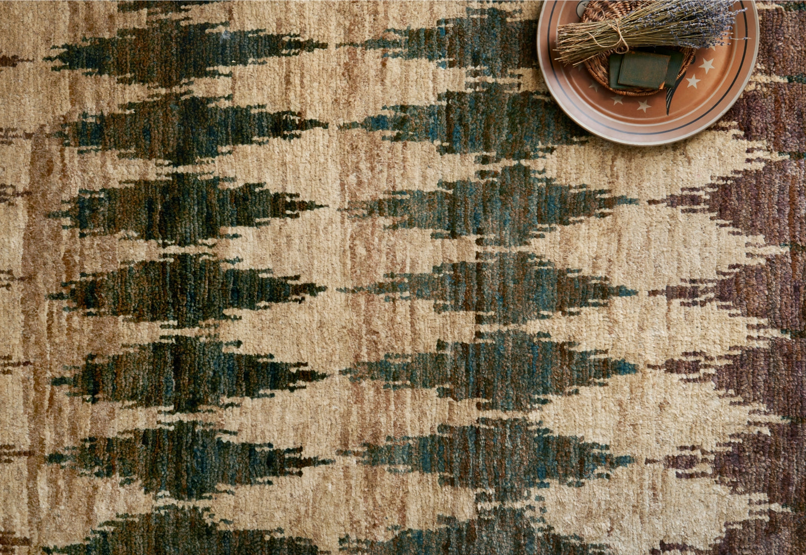 The sumptuous Xavier Collection is distinguished by its plush feel and bright, bold color palette. Hand knotted with 100% jute from India, Xavier's large scale Ikat design offers sophistication that works as an incredible centerpiece for a variety of
